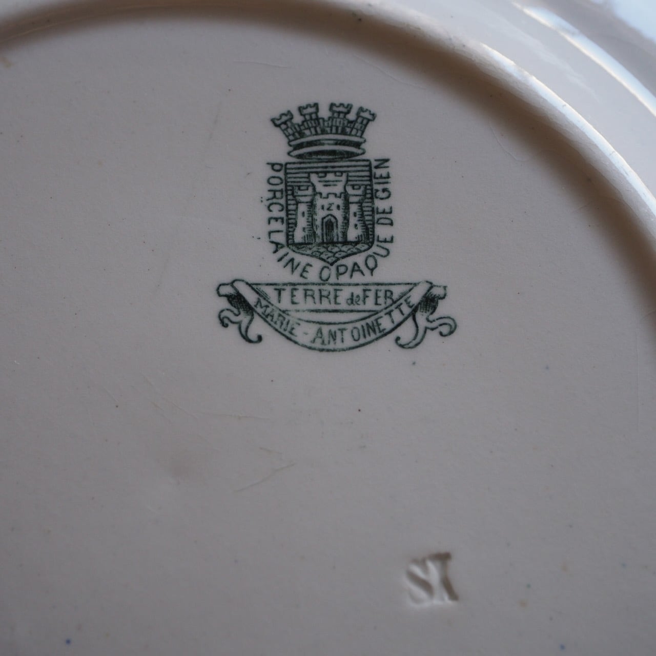 カオリンや長石が多く加えられた陶器(半陶半磁器)をTerre de fer テール・ド・フェールと呼びます。1770年に初めて生産され、19世紀後半に量産されました。より白く、より頑丈にと作られたものです。