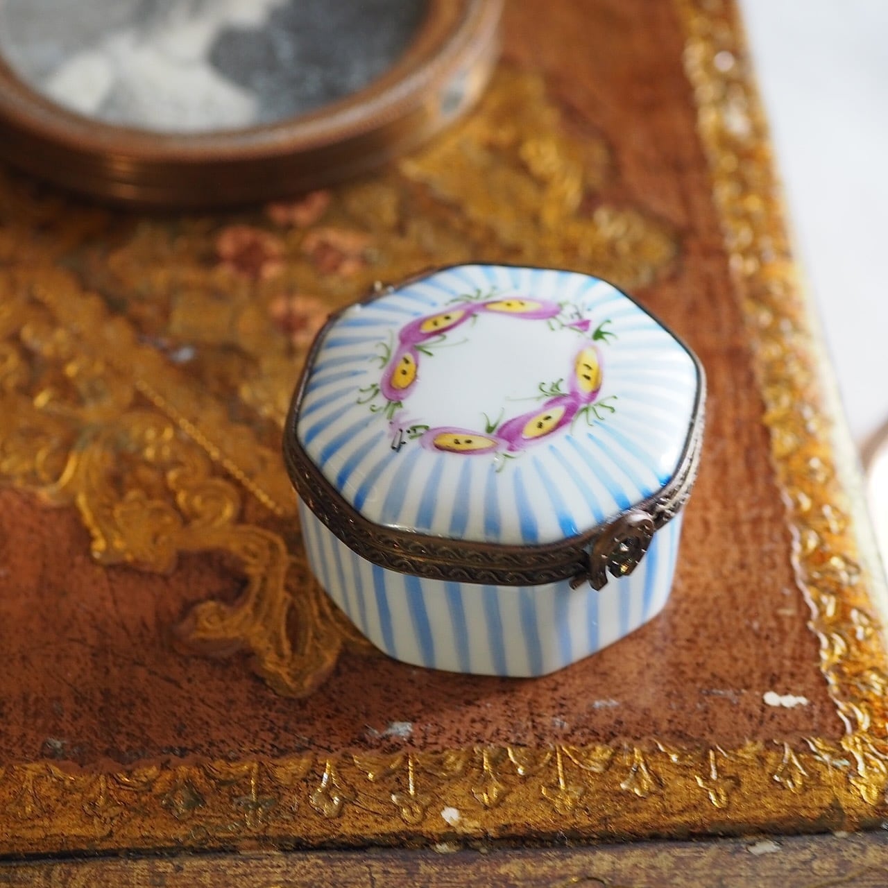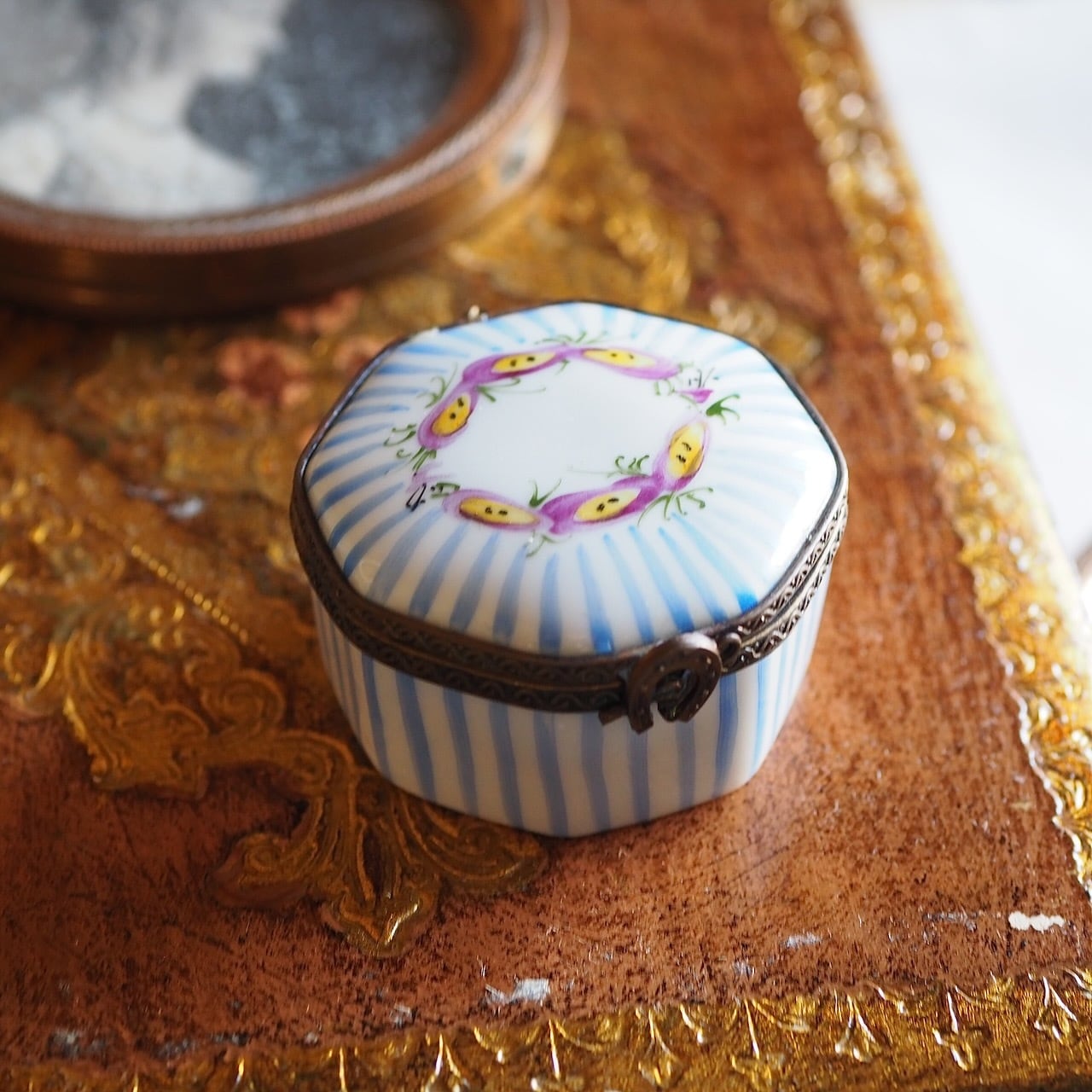 大切なジュエリーをしまっておきたい小さな宝石箱リモージュボックス。ころんとした愛らしい形に胸がキュンとします。