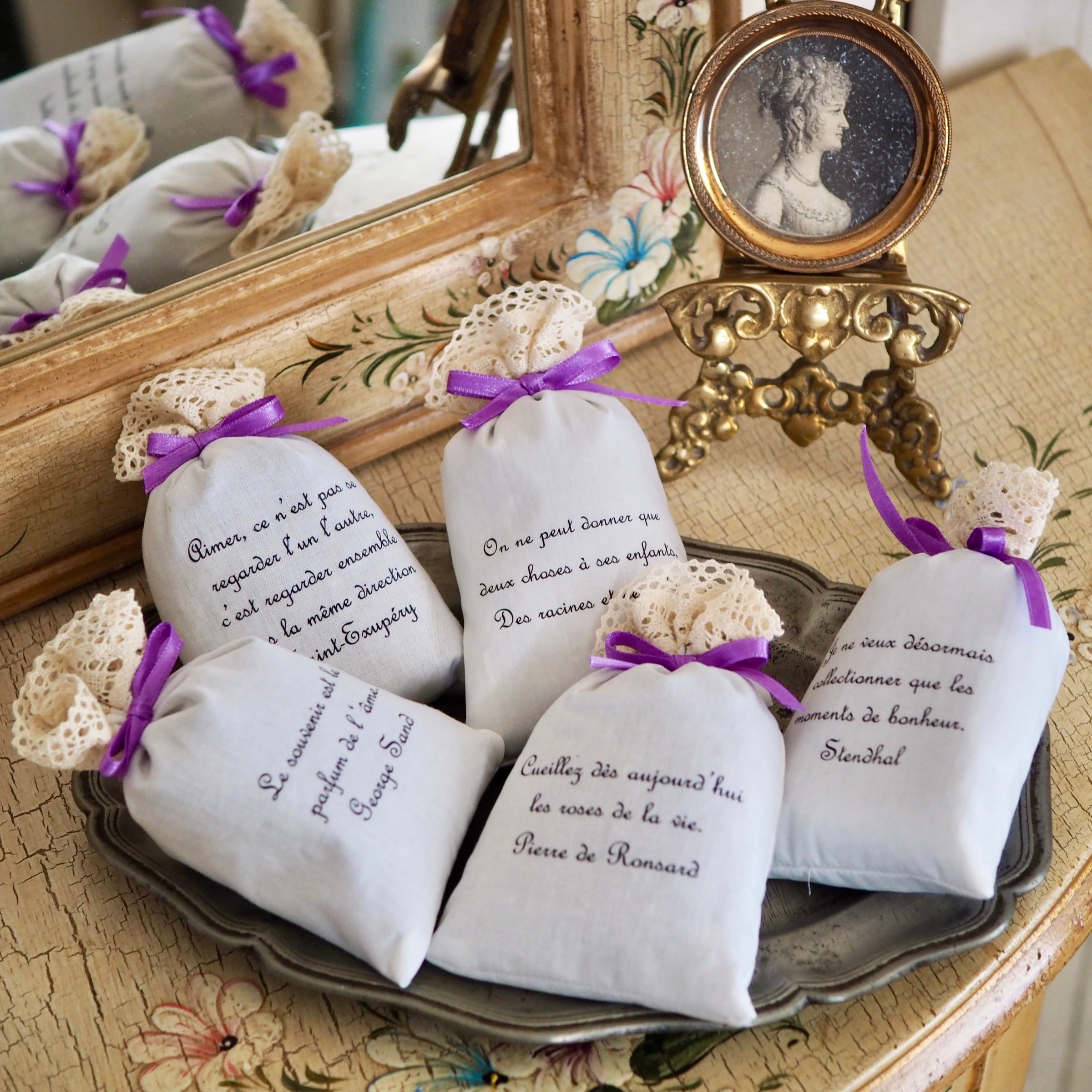 フランスの素敵な言葉が入った、手作りのラベンダーサシェです。