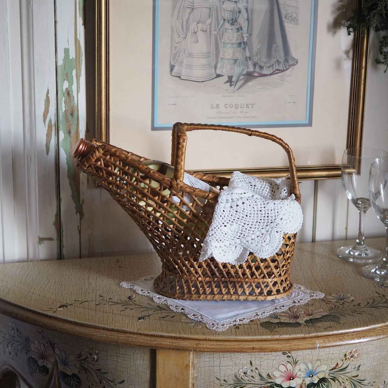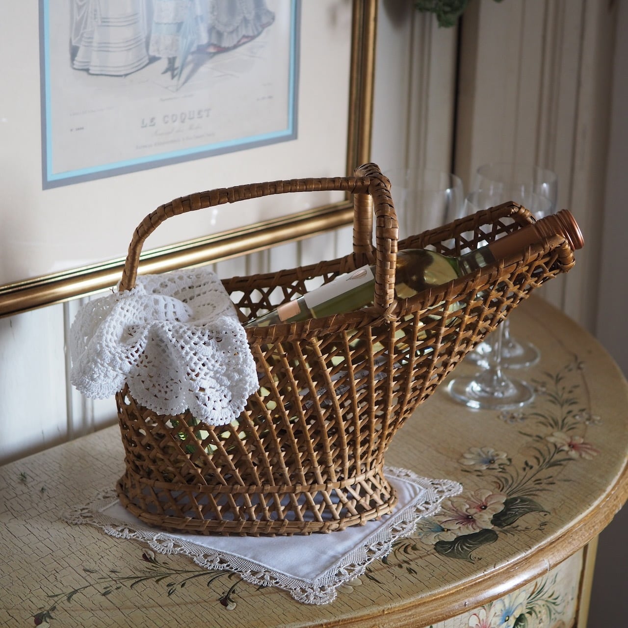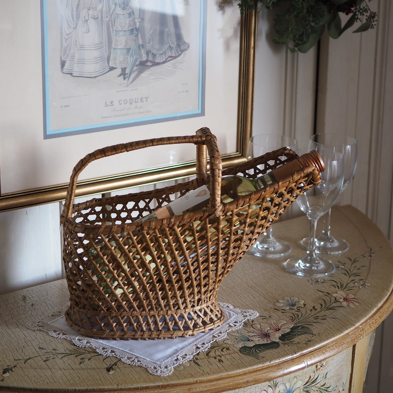 職人さんによってていねいに、しっかり編まれたワイン用のパニエです。高級ワインでなく、あえて気軽なテーブルワインをあわせたくなる風情があります。田舎風、その先に見える風景。それが現代人にとっての癒しといえるかもしれません。