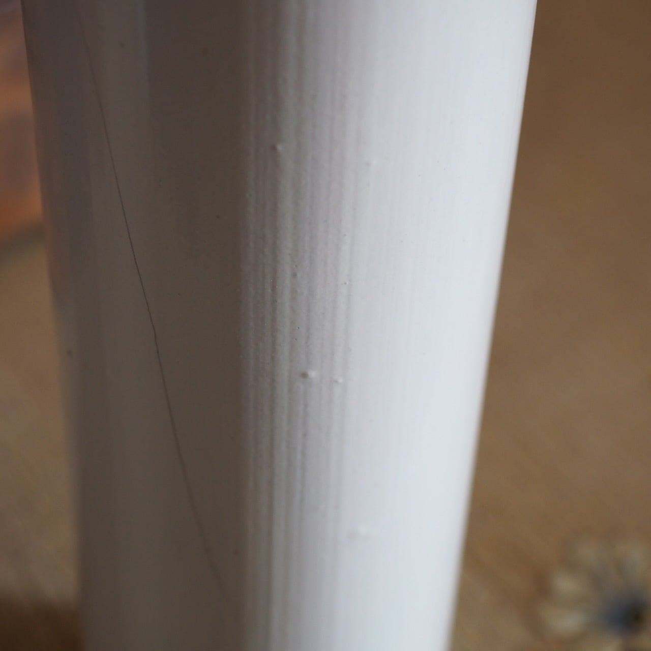 淡いグレー寄りのオフホワイト。細長いフォルムが一輪挿しにぴったりなのです。マスタードポットなど同じ系統の陶器と合わせても素敵です。