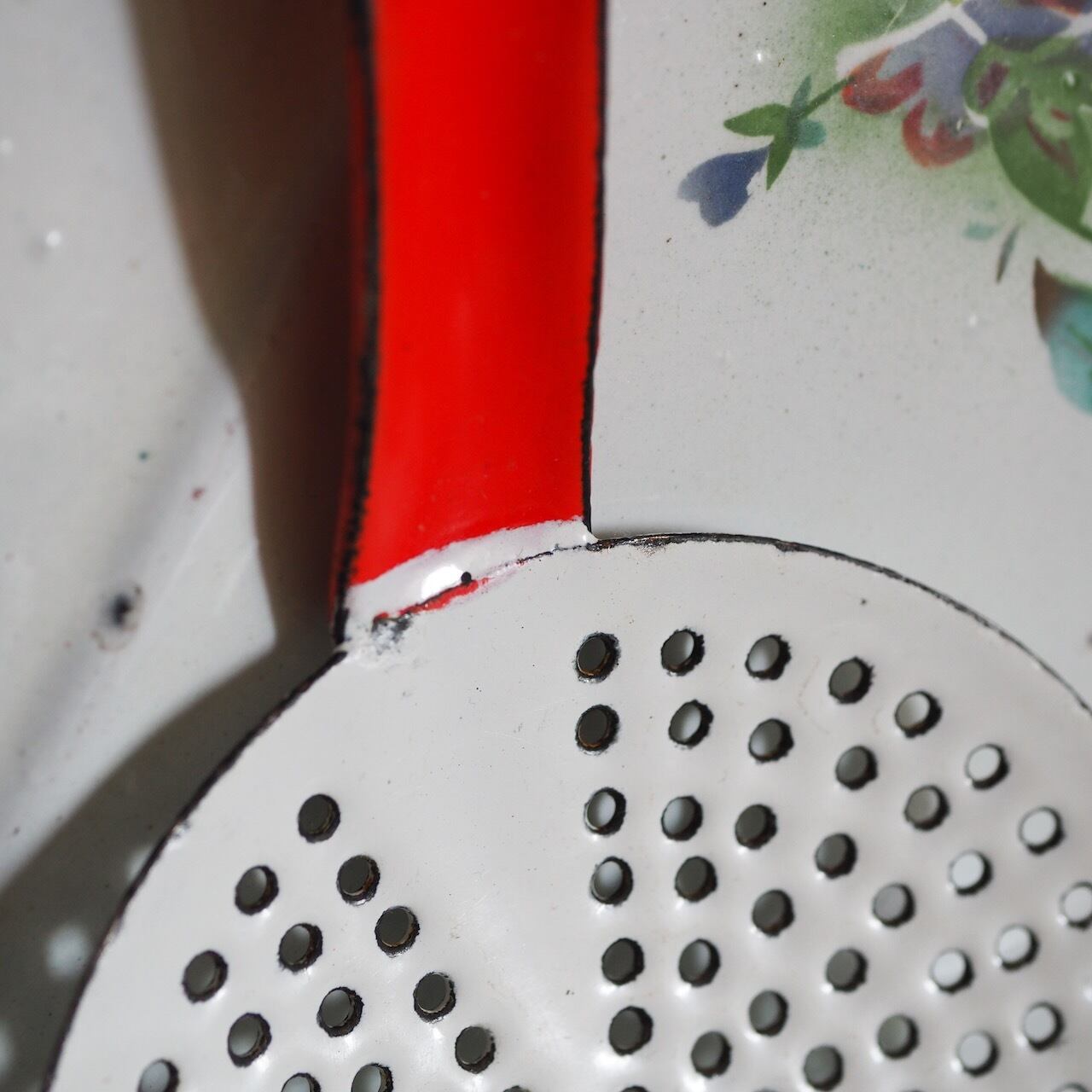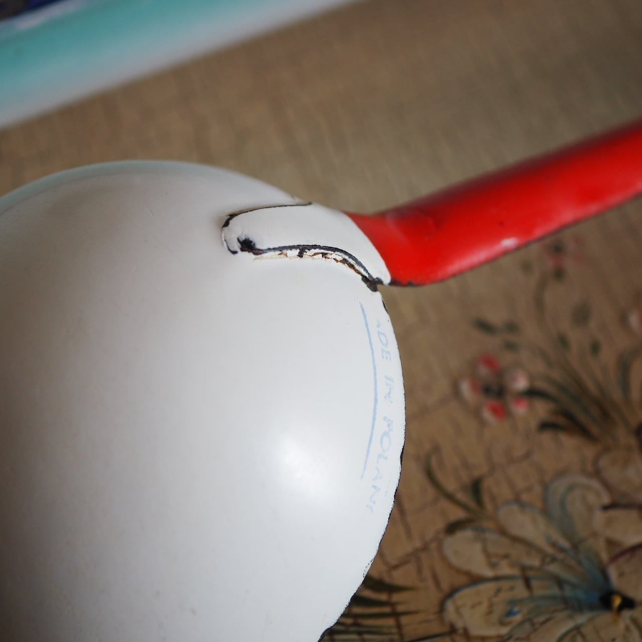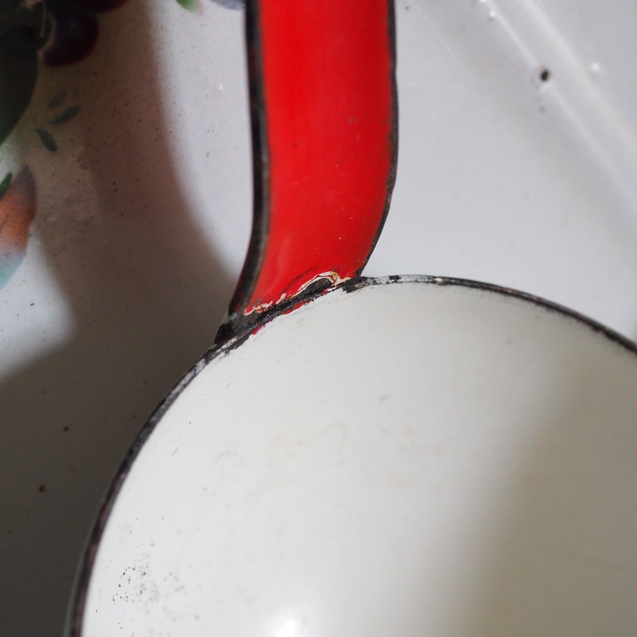 リルシュルラソルグの日曜のアンティーク市で出会った、朱に近いヴィヴィッドな赤がかわいいレードルセットです。
