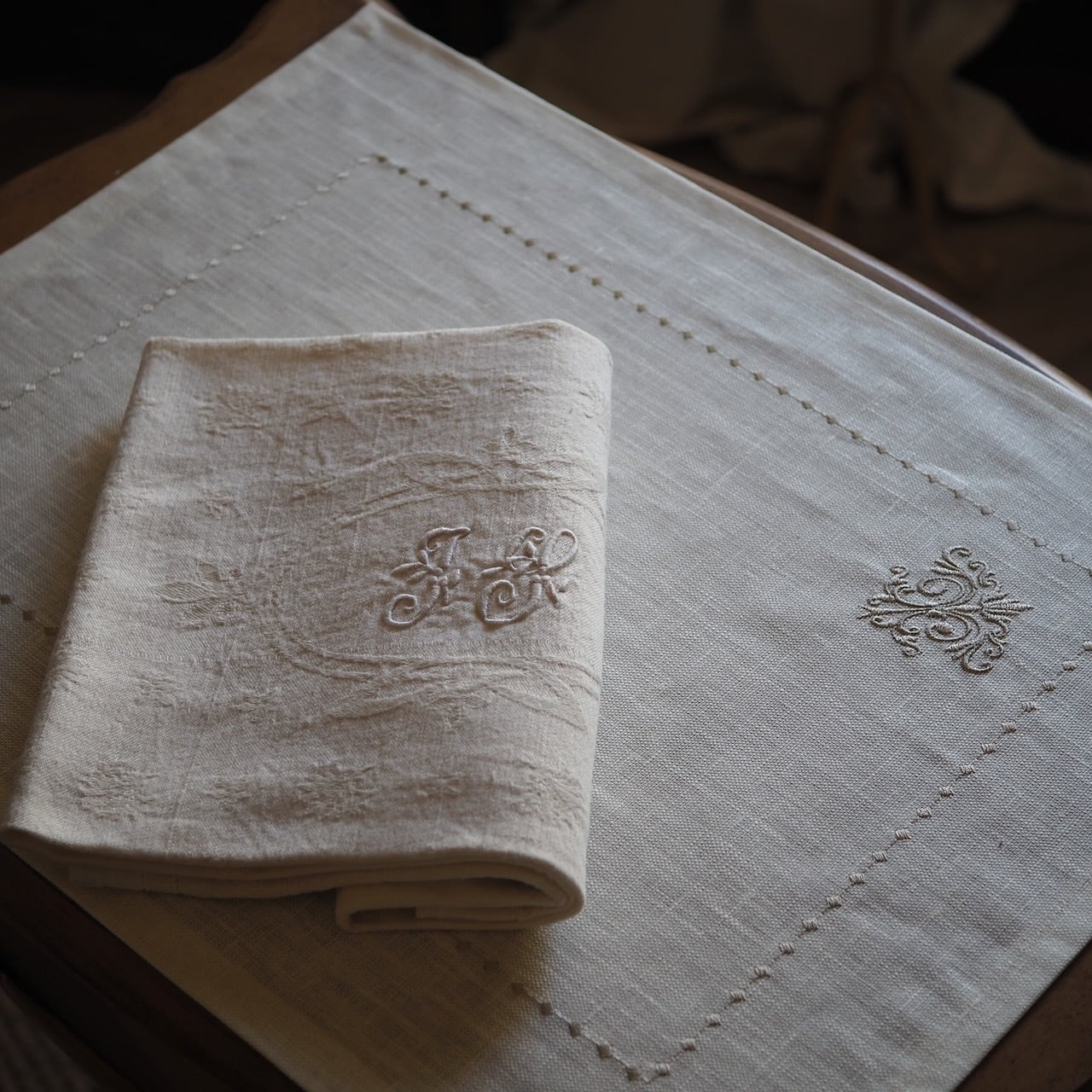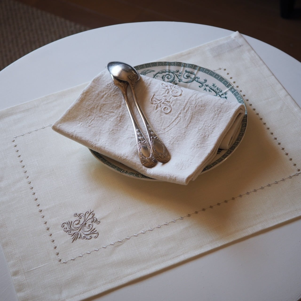撥水リネン ランチョンマット【2枚セット】 モノグラム刺繍 南仏 Lourmarinのアトリエから