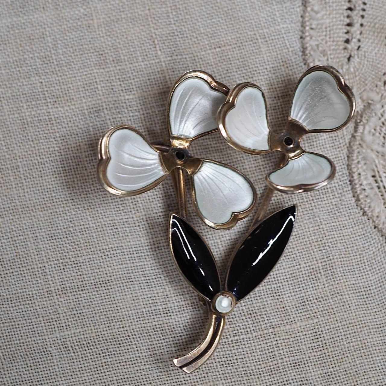 エマイユ(七宝)でていねいに仕上げられた、花のブローチです。