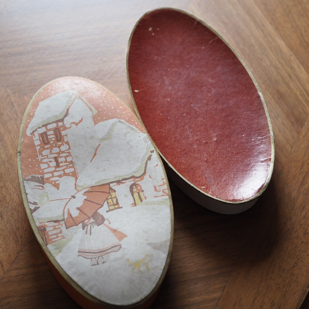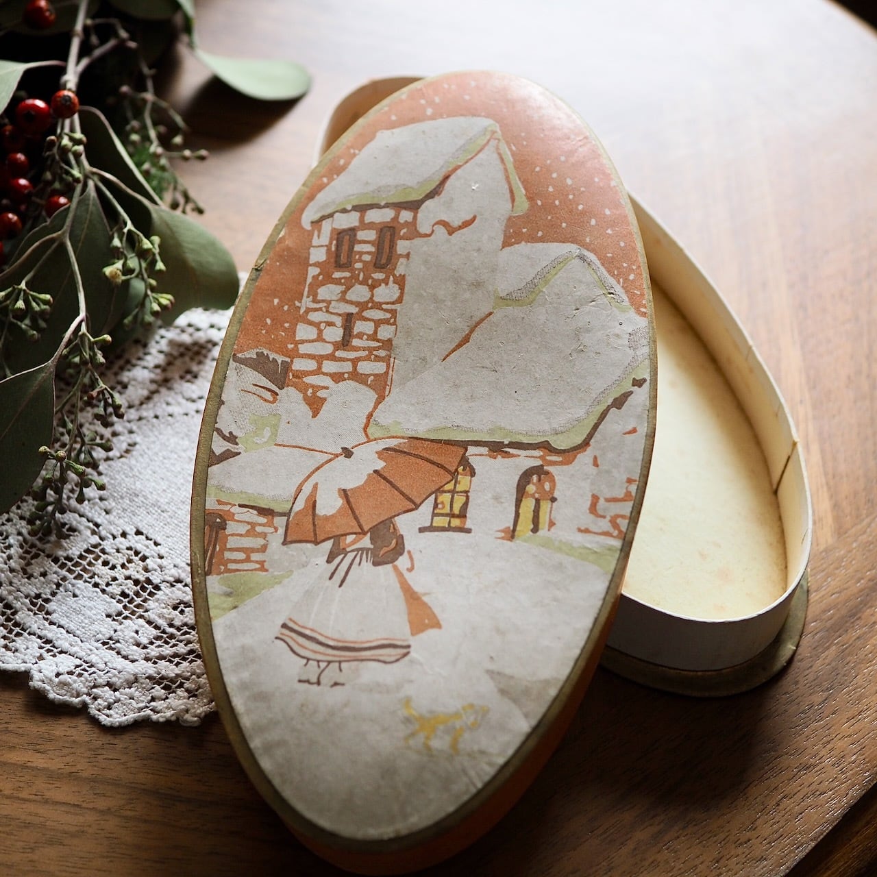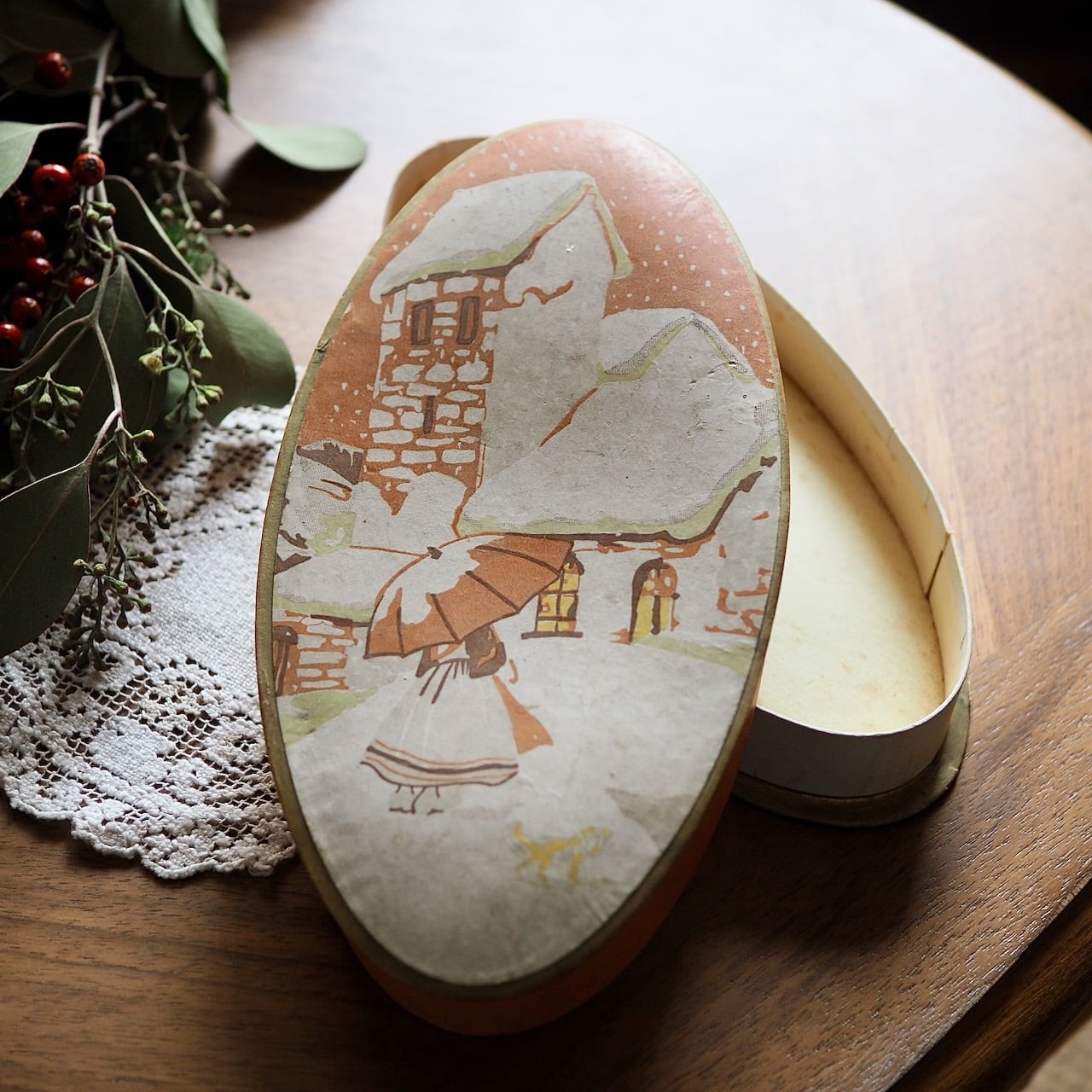 オーバル型の紙製のボックスは、まるで絵本のワンシーンのよう。インテリアに添えるだけで、そこにぽっと灯りがともります。