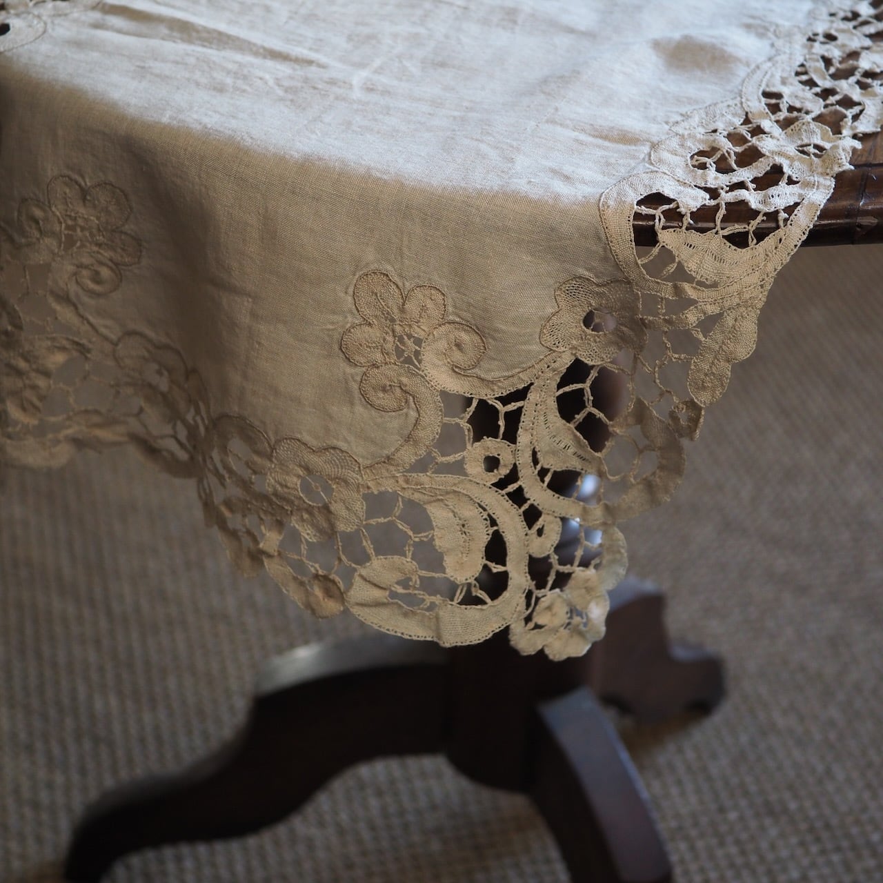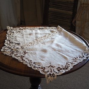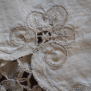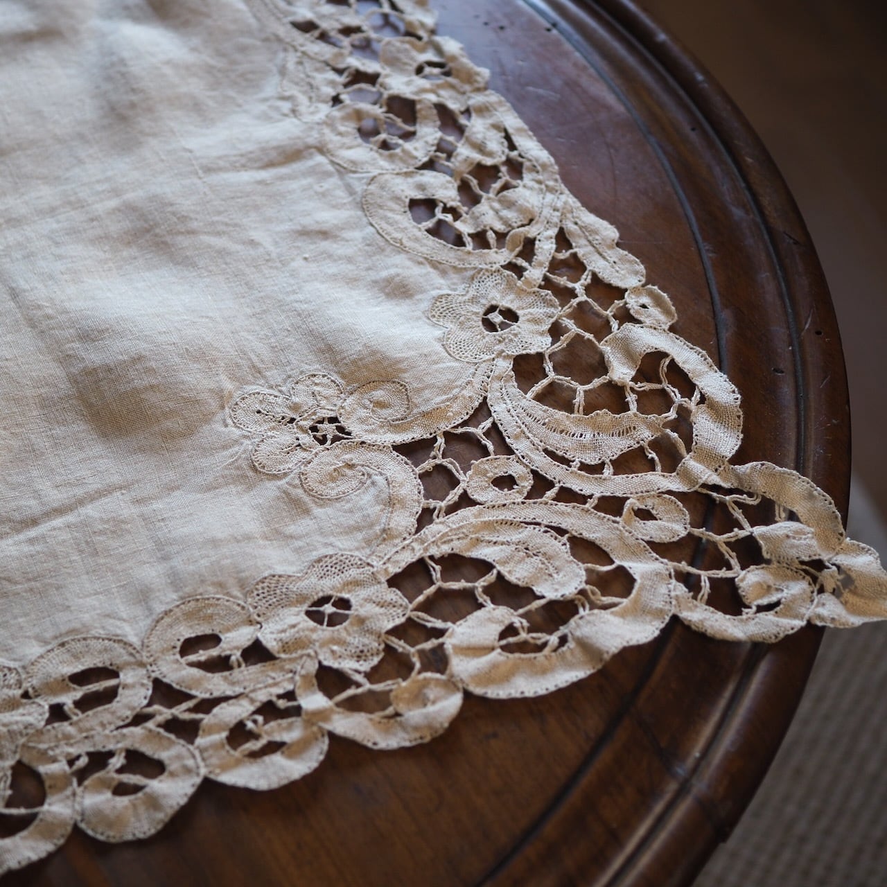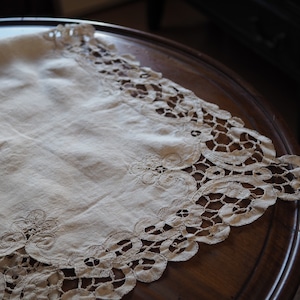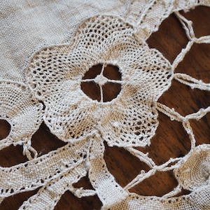 手編みレース付きリネン(テーブルセンター)