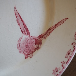 空を羽ばたく小鳥と桜の花、赤の色調が可憐なプレートです。