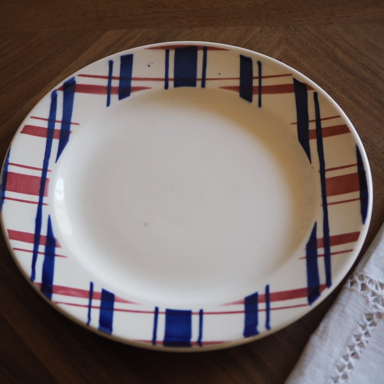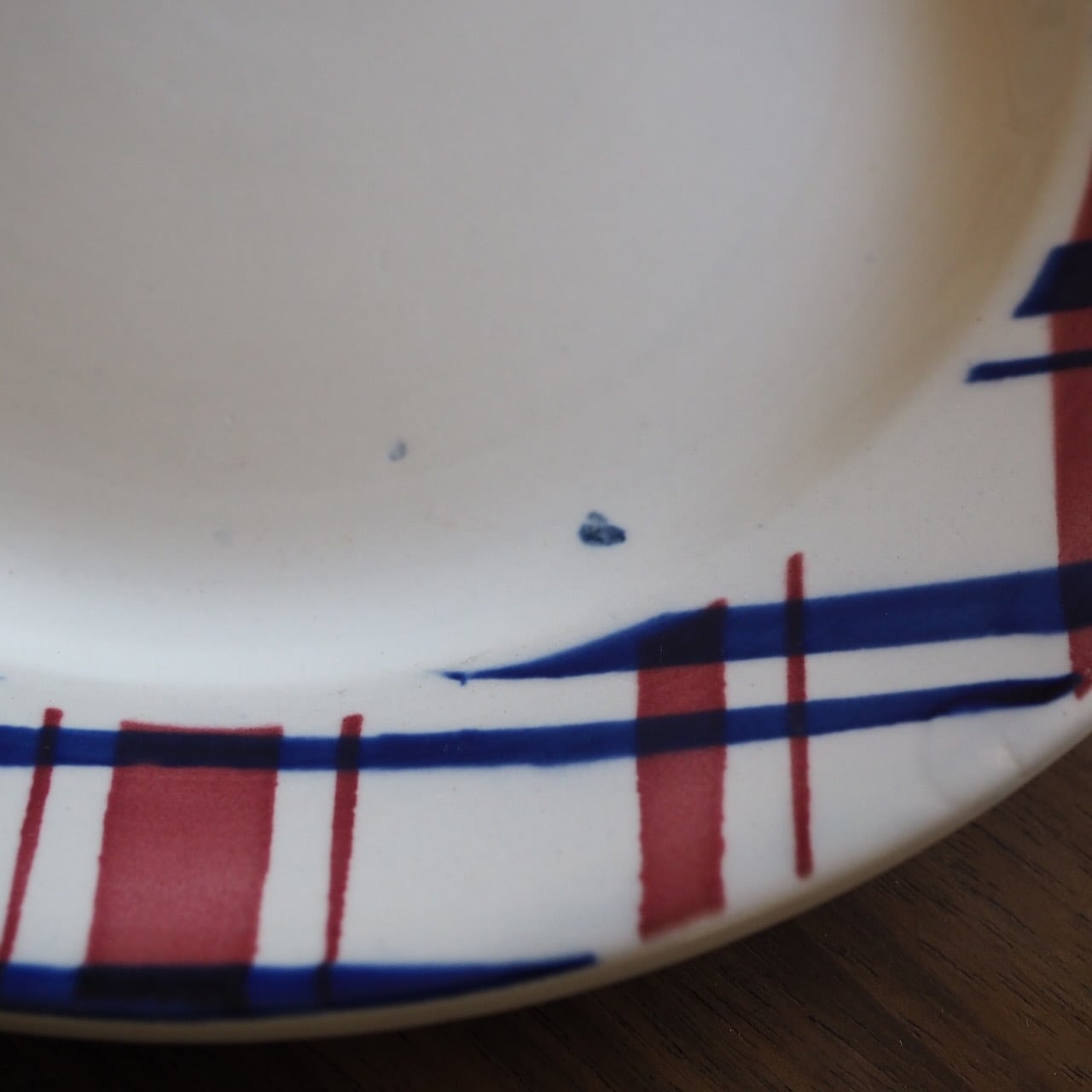 細かいカトラリー傷が表面にあり、インクの移りが少々見られます。小さな傷からのシミが一つあります。それ以外は、ヒビ・カケもなく、とても良好な状態です。