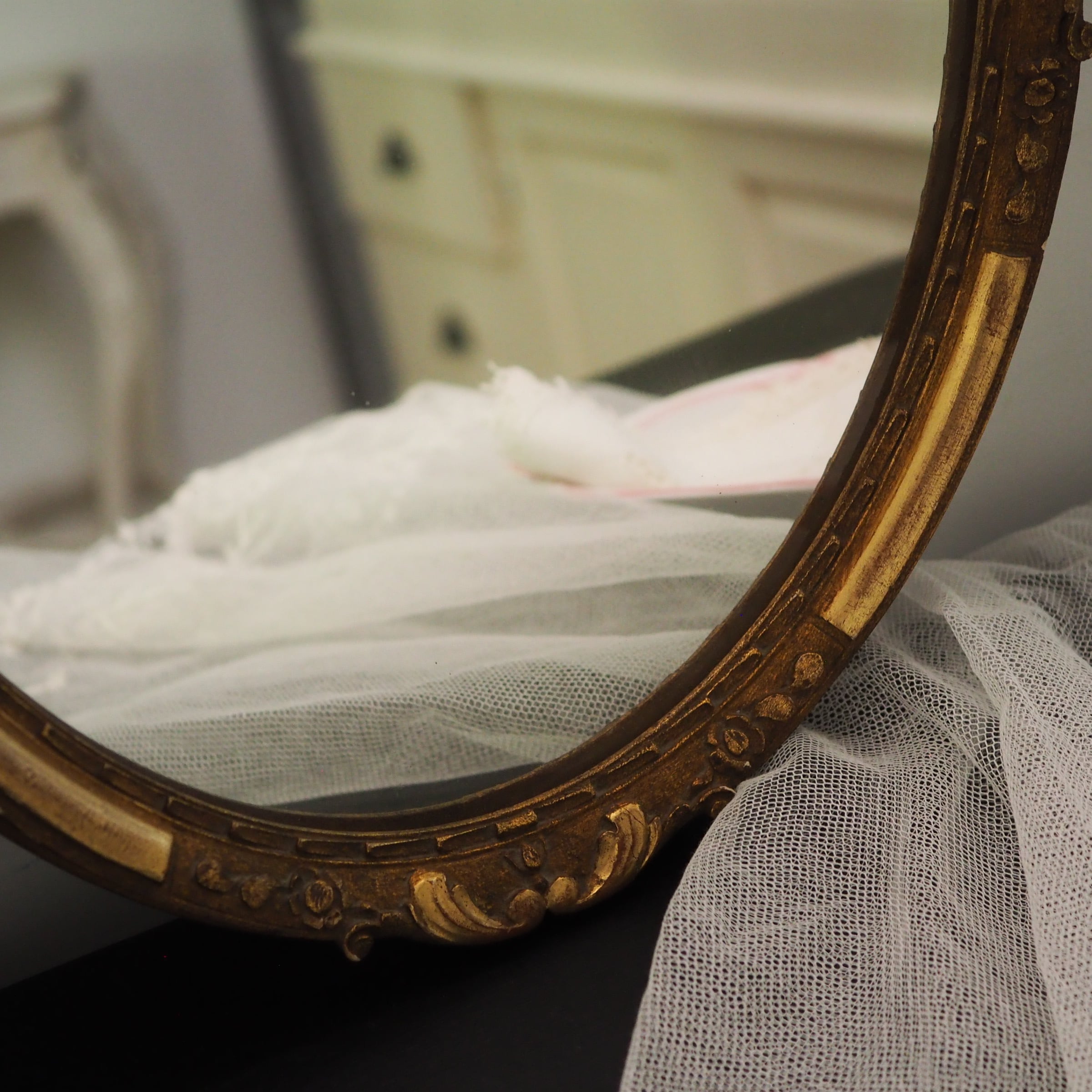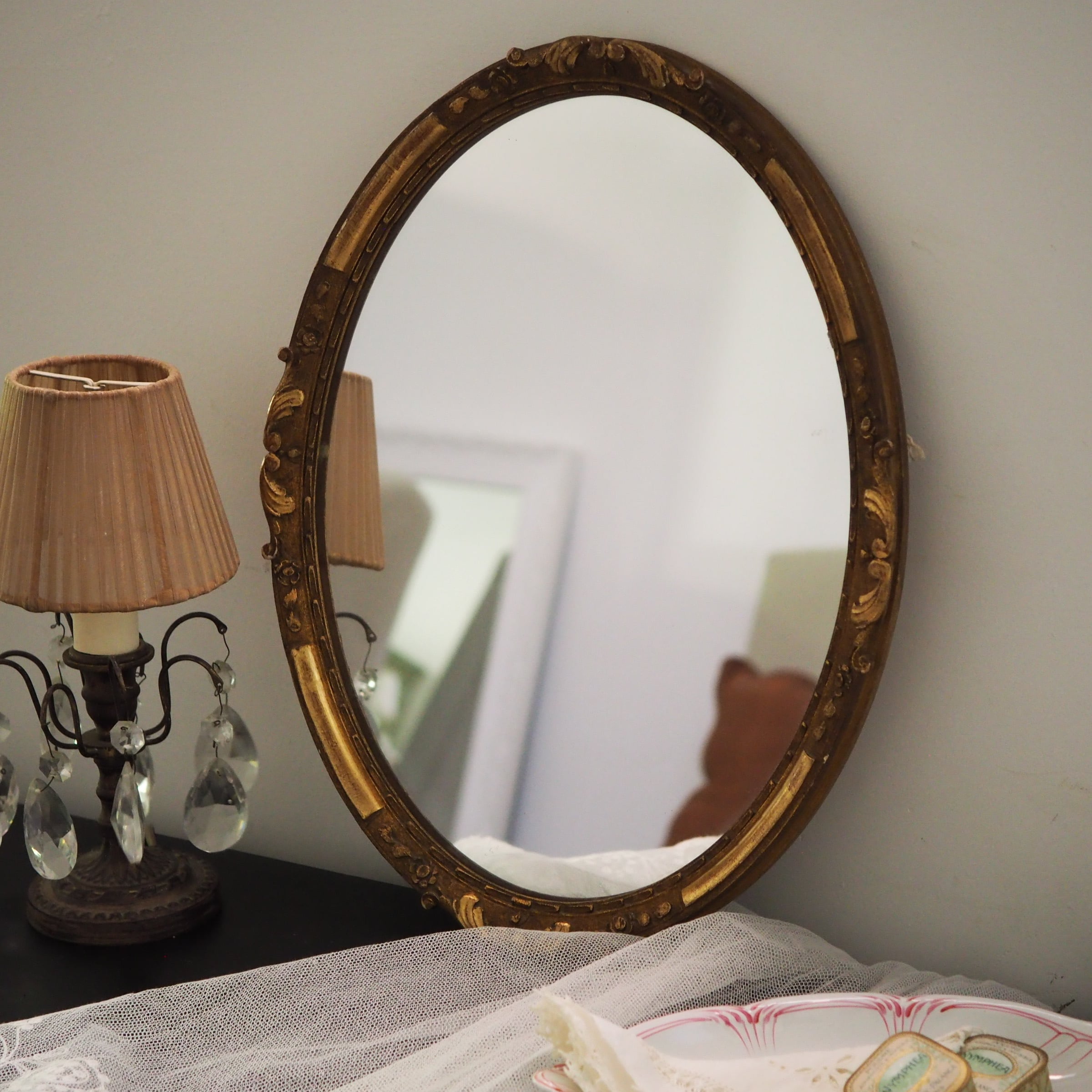 アンティーク木製オーバルミラー