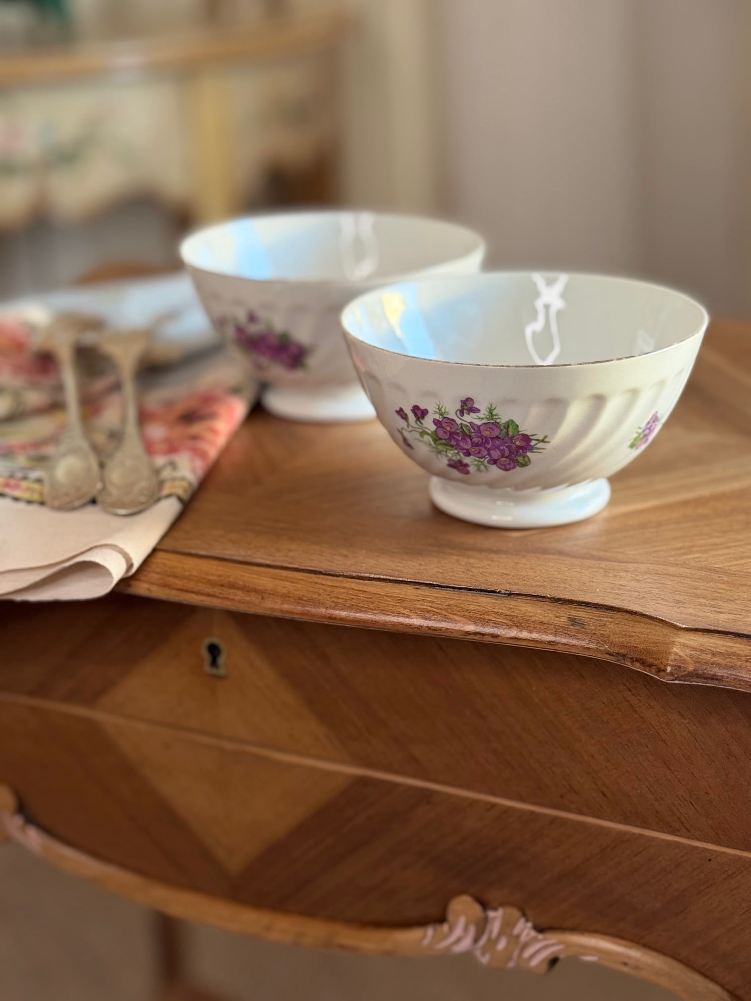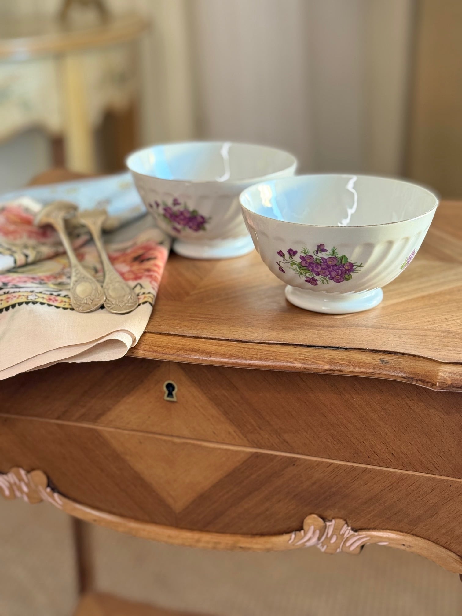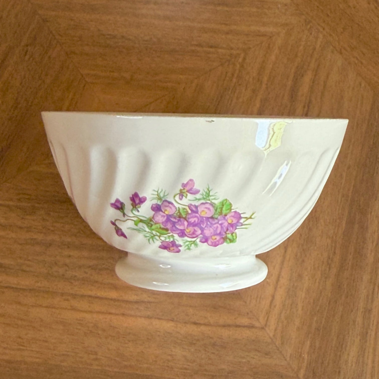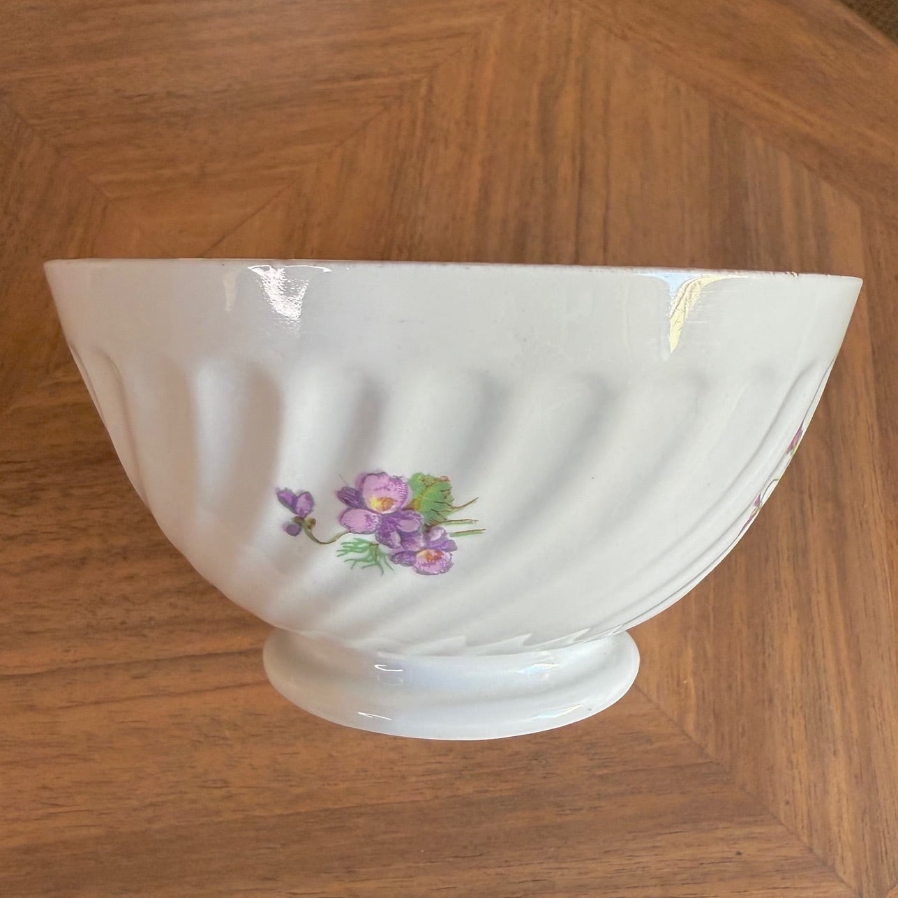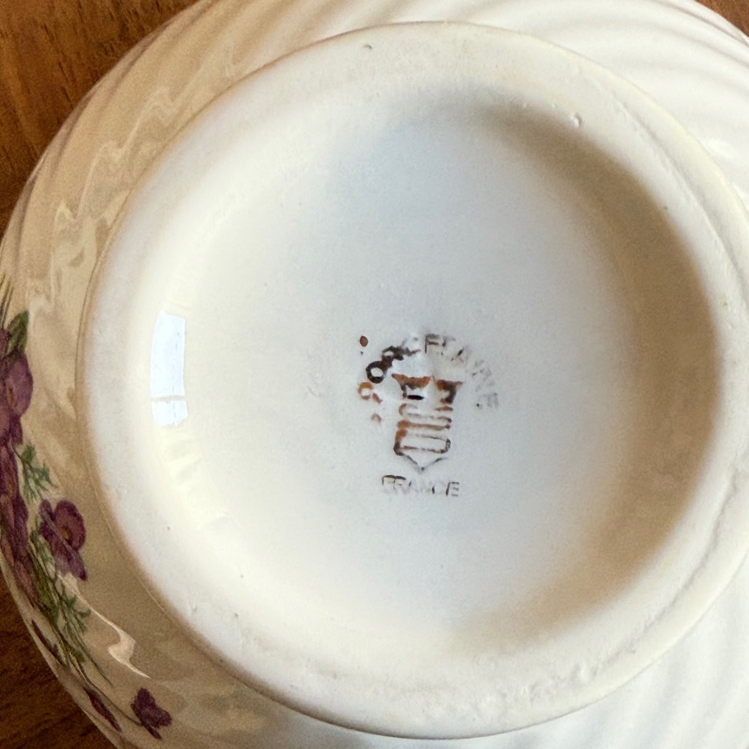 スミレのブーケが愛らしい、フランスビンテージのカフェオレボウルです。