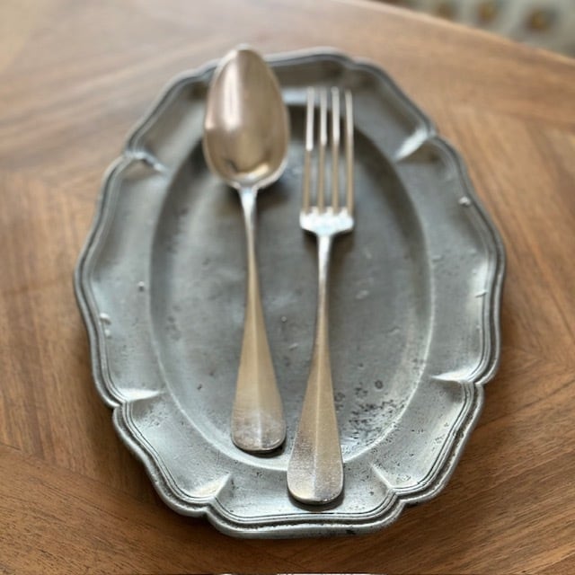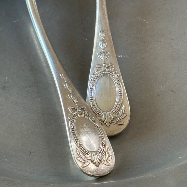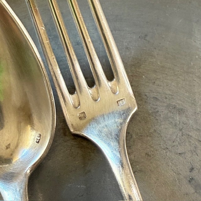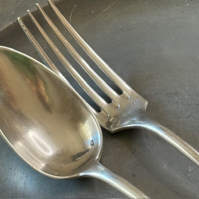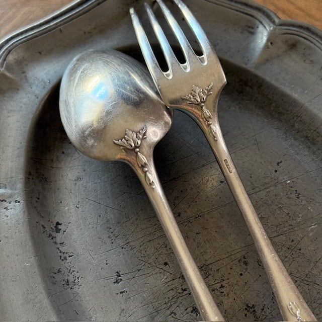 シルバープレートのカトラリー、フォークとスプーンのセットです。