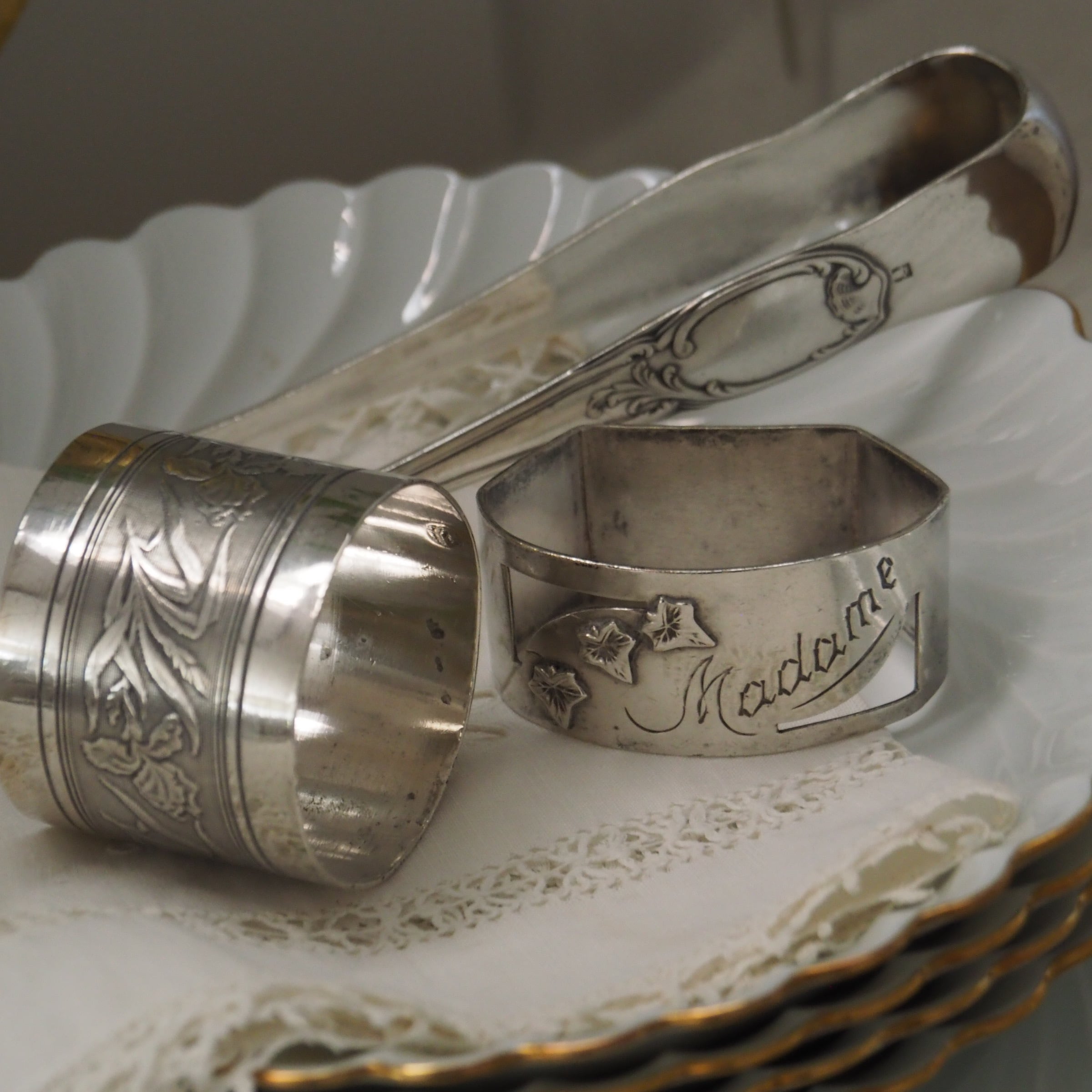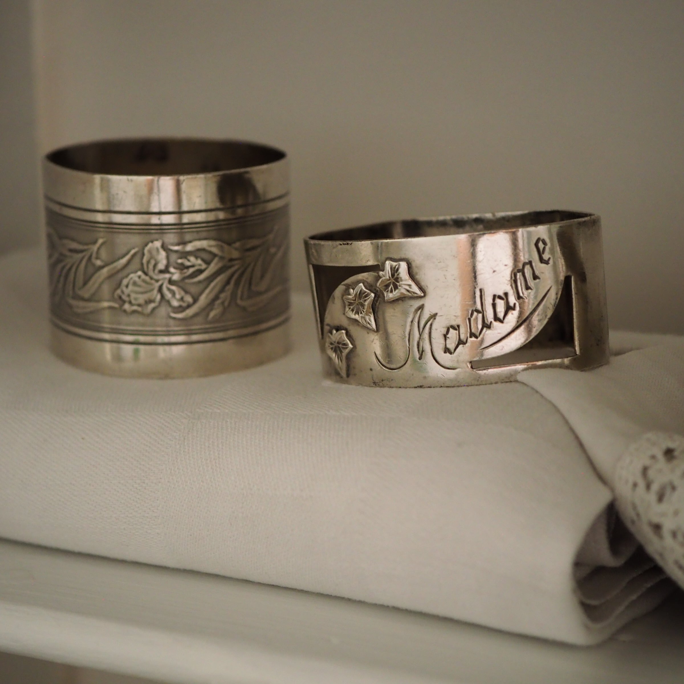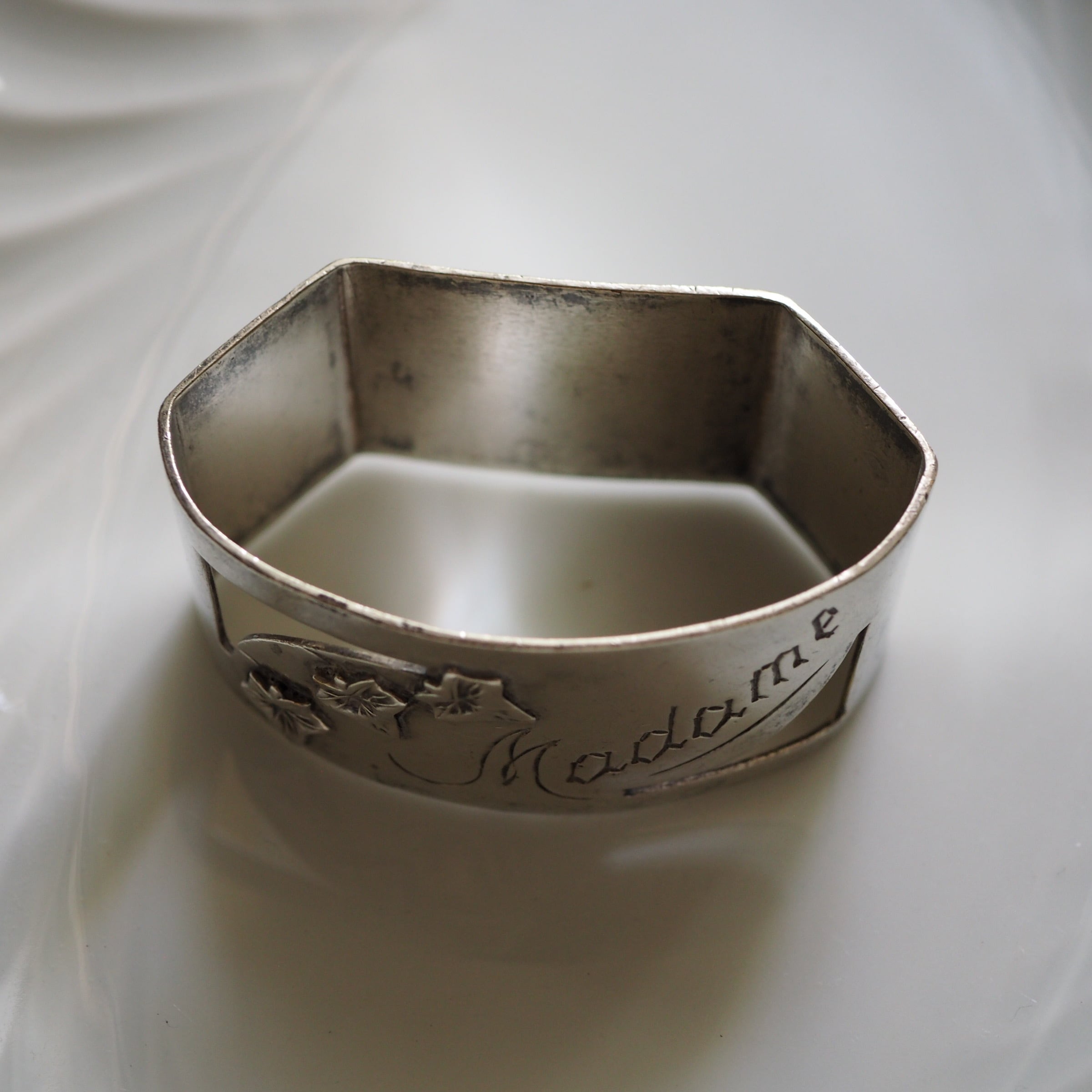 「Madame」彫刻入り フローラル フランスアンティークナプキンリング