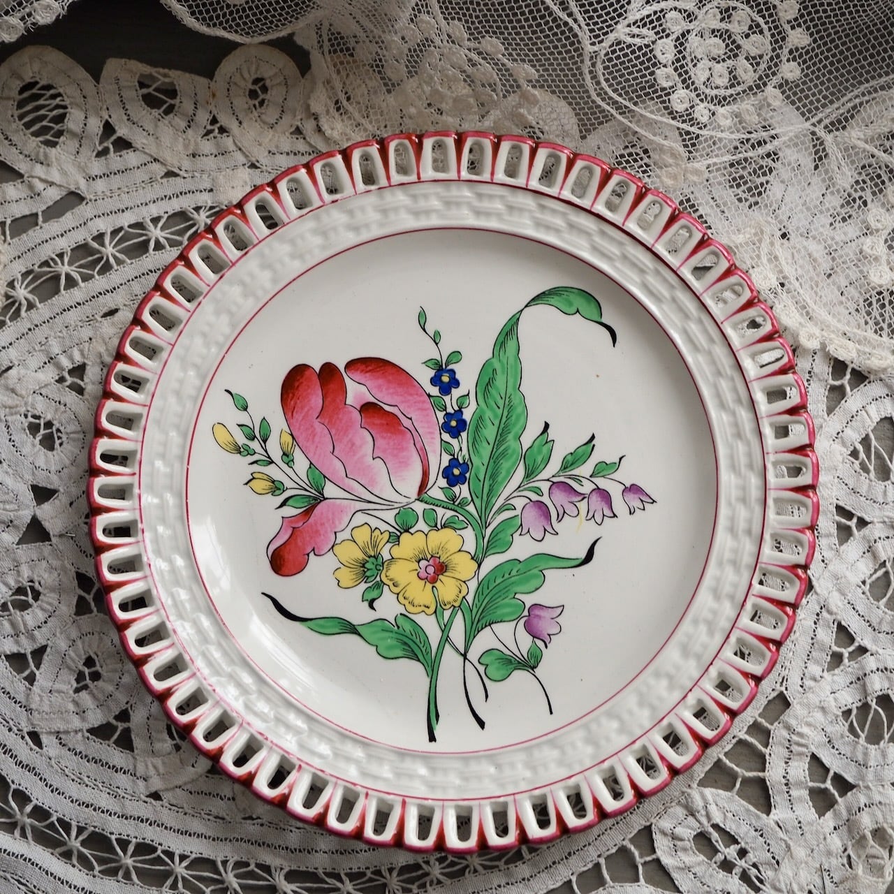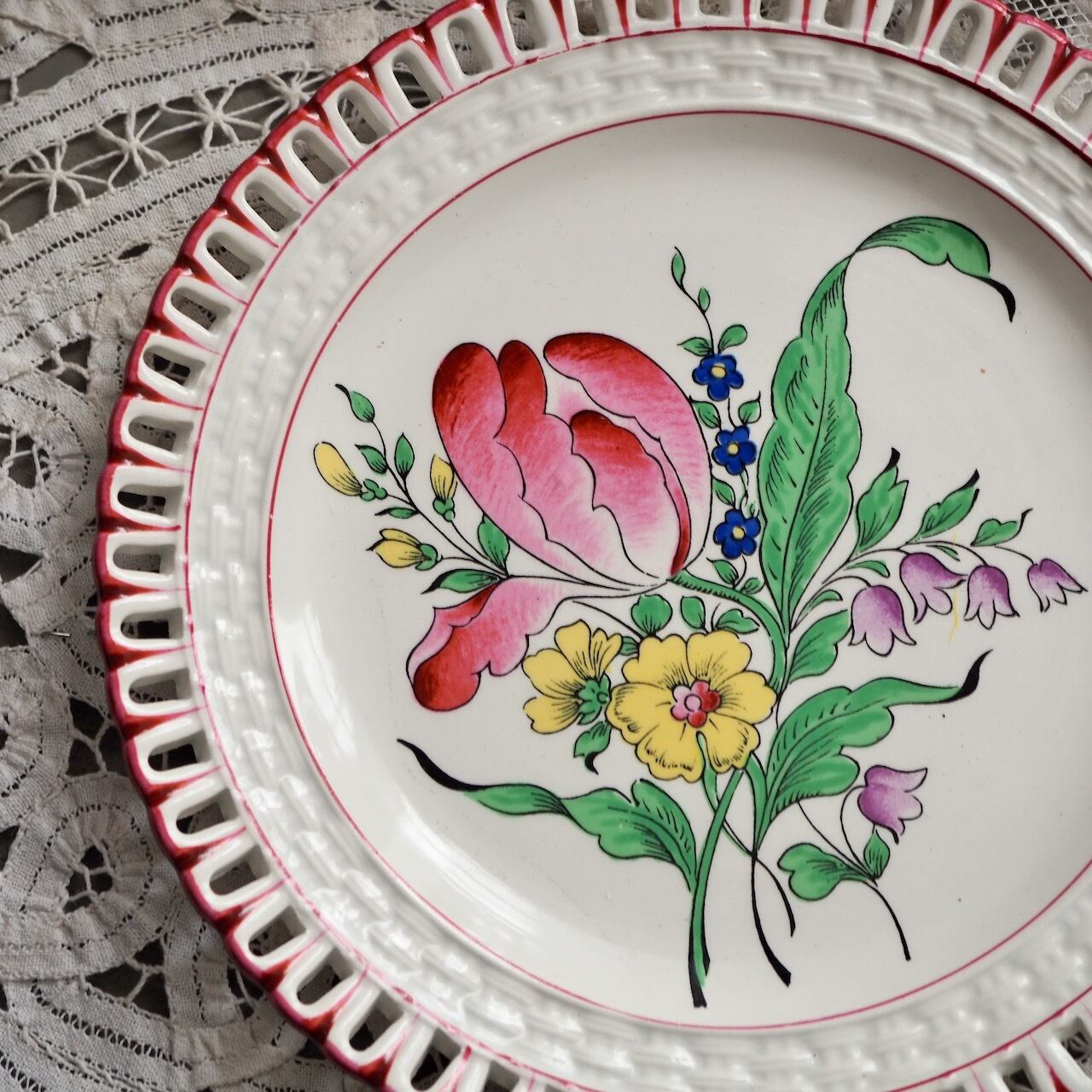 リュネヴィルKGのパニエプレート"Réverbère"チューリップ1輪