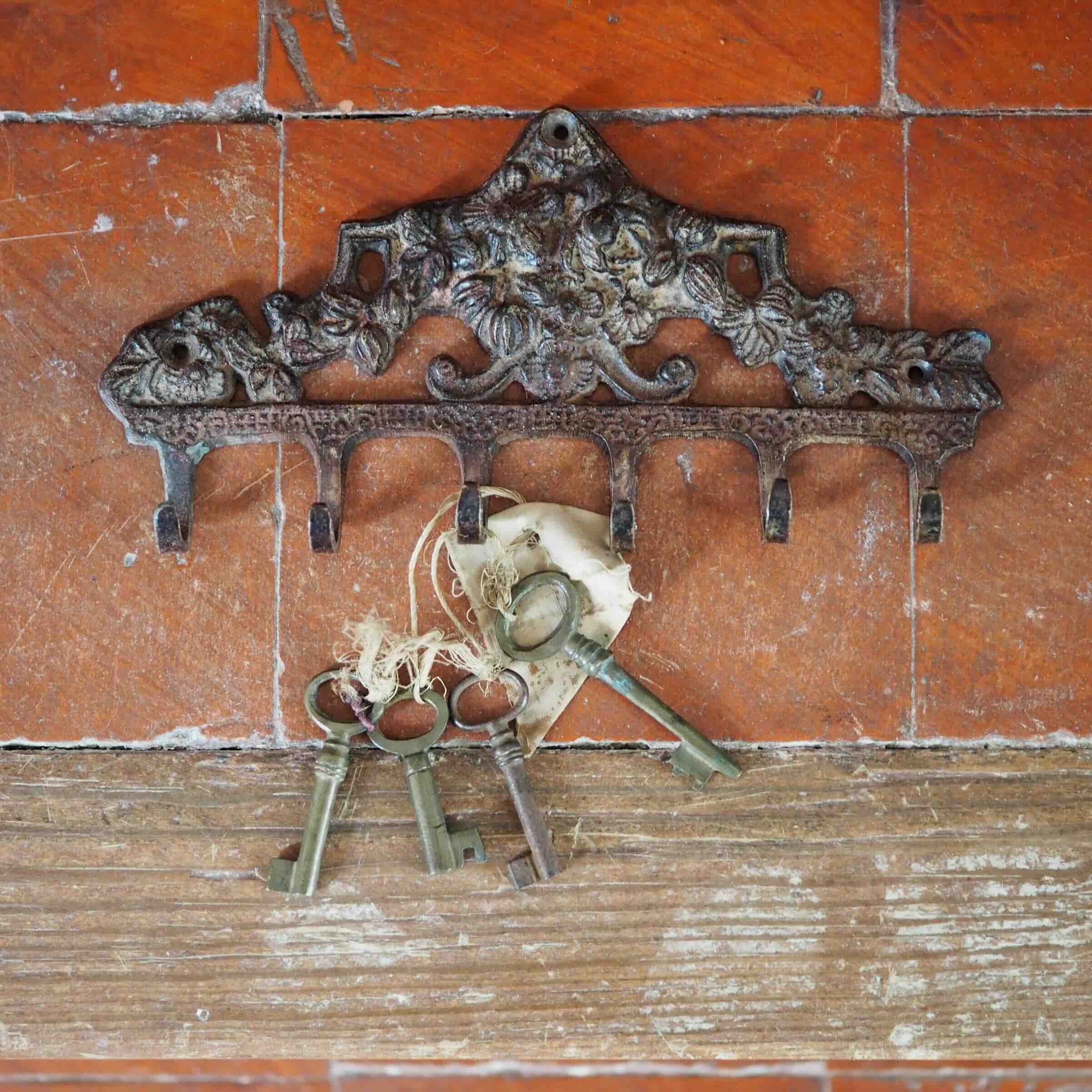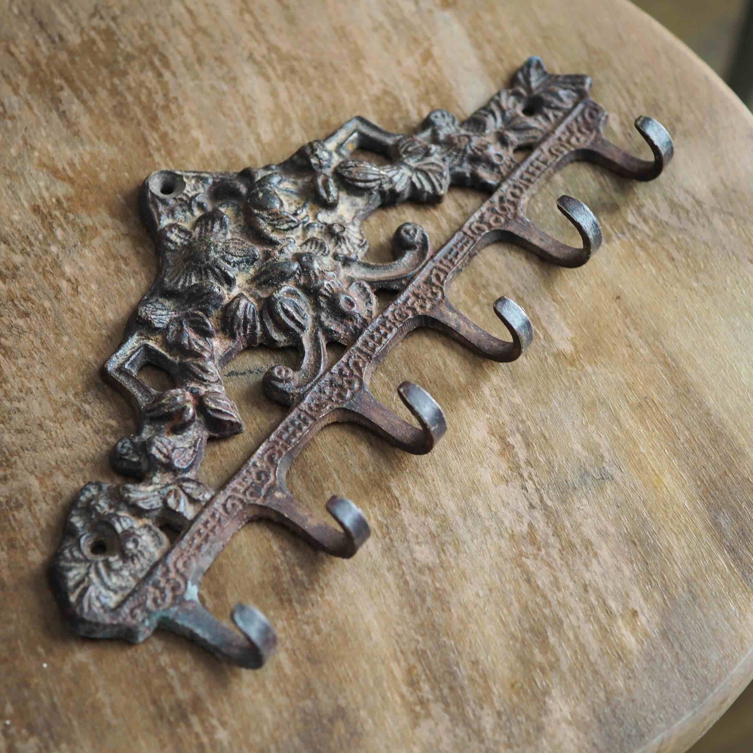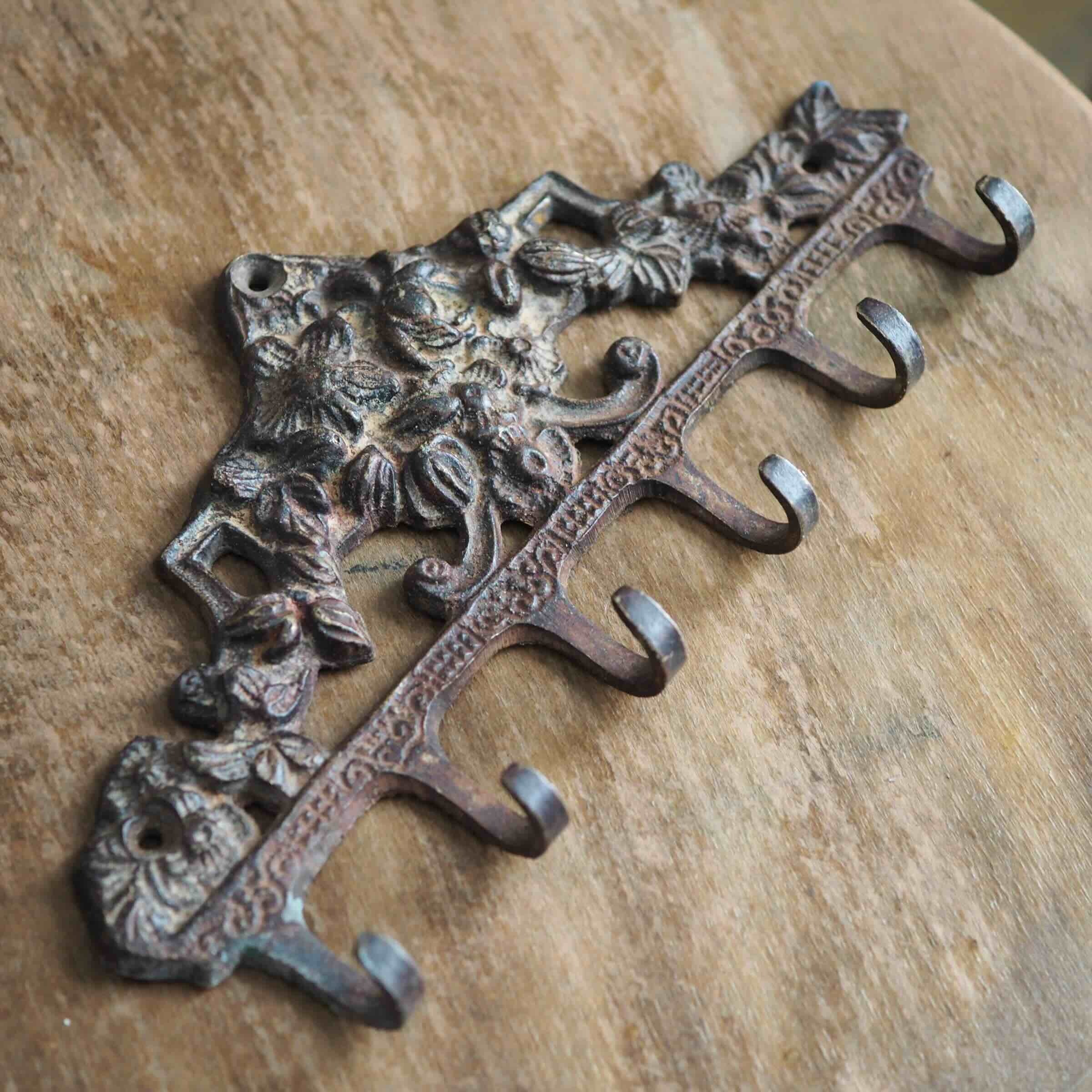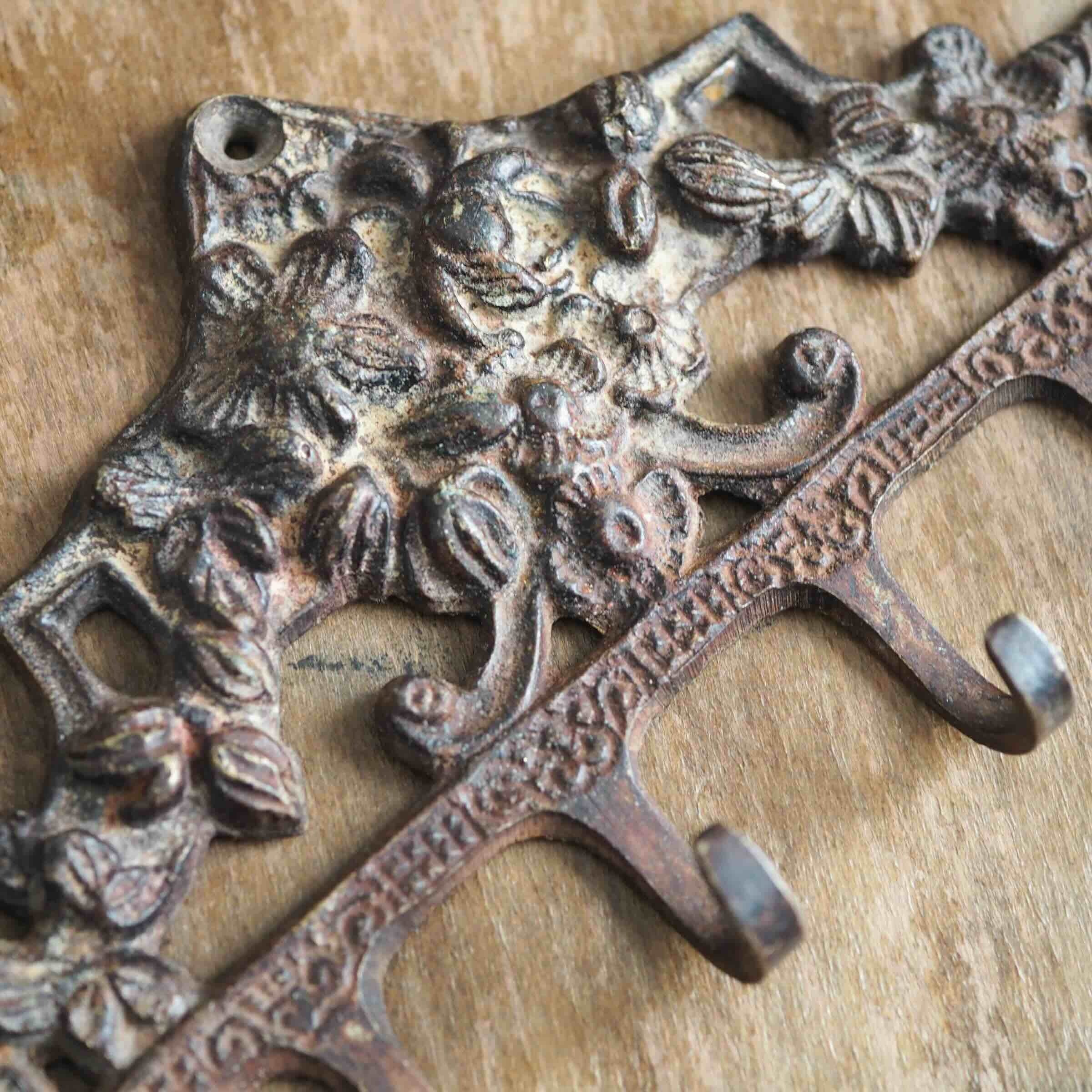 フックが6個ついた、おしゃれなアイアン製のフックハンガーです。