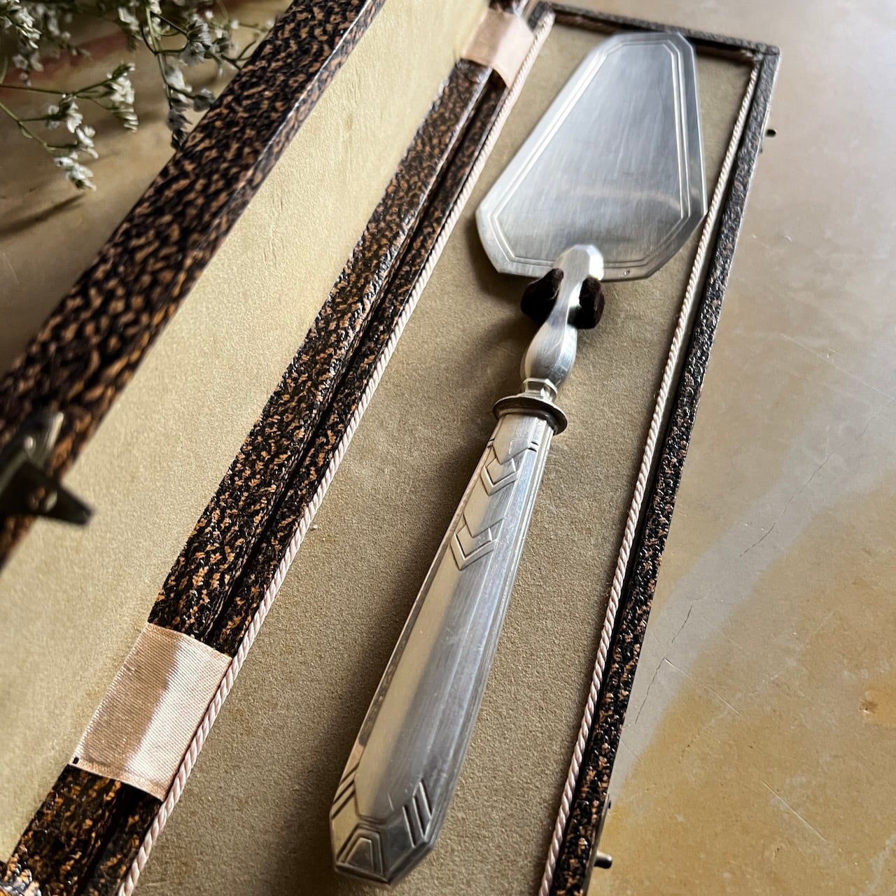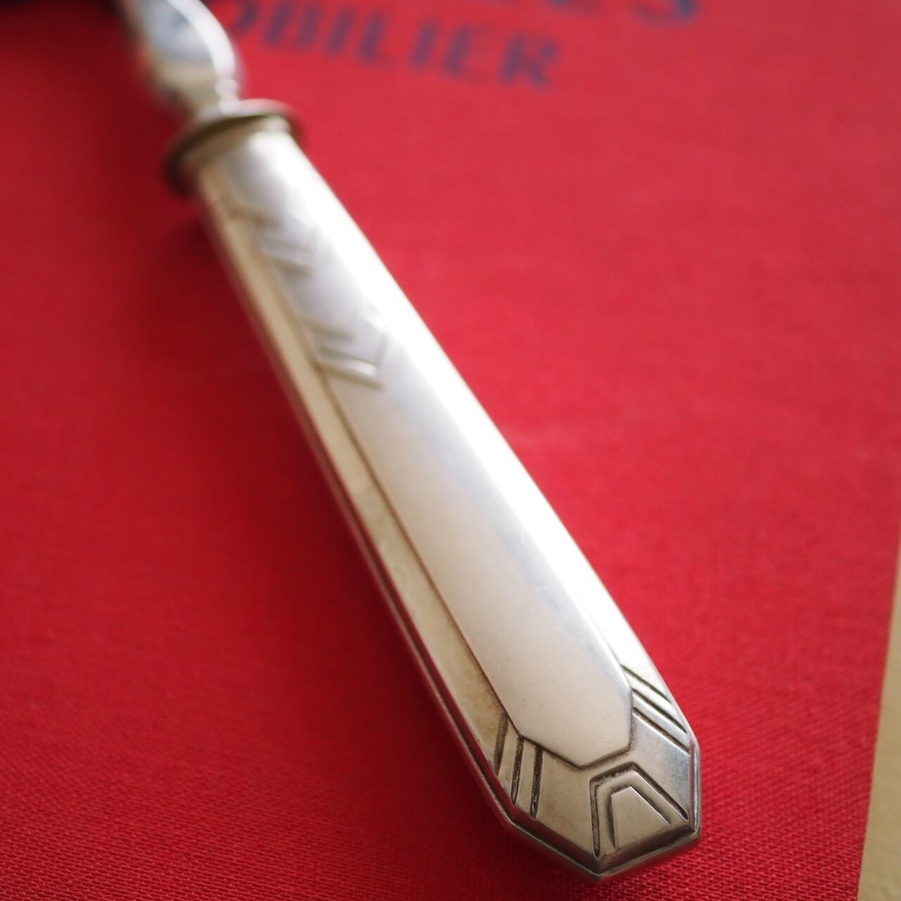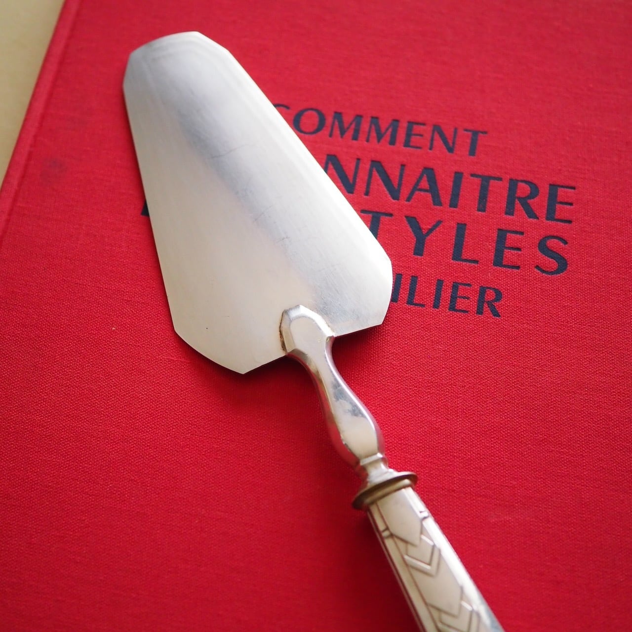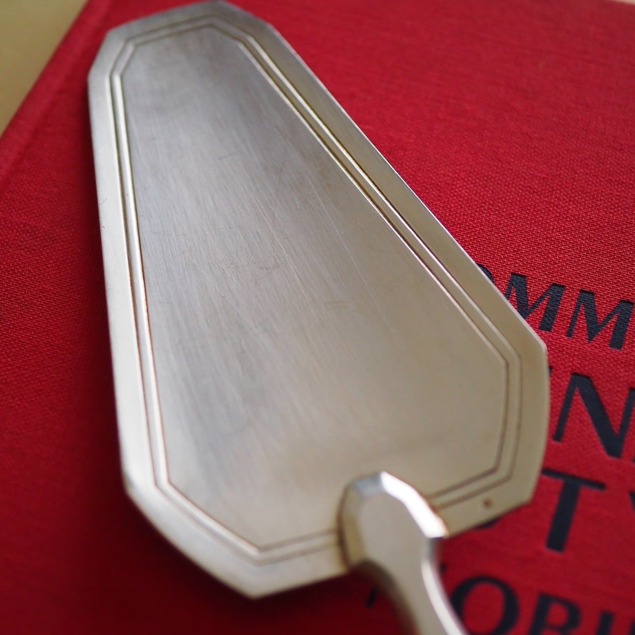 ちょっと重めで、手に持ったその重厚感がケーキを支えやすいシルバー製のケーキサーバーです。1900年代初頭に作られたアールデコのデザインが、お祝いのシーンでも特別な存在感を放ちます。ケーキ作りがお好きな方へのプレゼントにも喜ばれると思います。