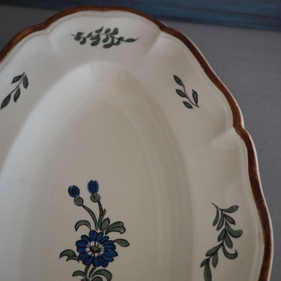 アイボリーの陶肌が柔らかい印象の大きめラヴィエです。意外と古く100年以上前に作られたディゴワン・サルグミンヌのお皿ですが、状態は完璧です。ラヴィエとしては大きいサイズなので、この一枚でテーブルが可愛さであふれます。料理にもお菓子にも。和食にも相性良しのオーバルプレート。一枚あると本当に重宝するので、大活躍間違いなしです。