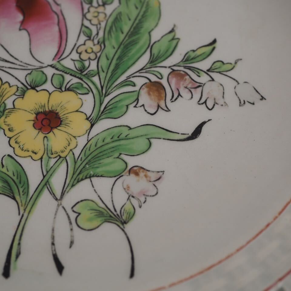 フランスの名窯リュネヴィルのかわいいアンティークプレート。マリーアントワネットも愛した由緒正しい窯リュネヴィルのデザート皿です。バラやチューリップなど春の花が描かれたカラフルな色付け絵皿シリーズ"Réverbère" 。一点一点絵柄が違って楽しいです。
