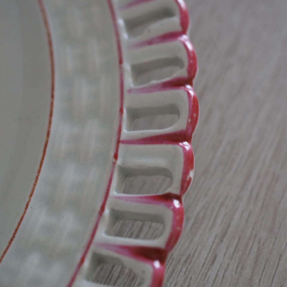 パニエ模様も美しく、手で色づけされたピンクの縁取りもツヤツヤと輝いています。