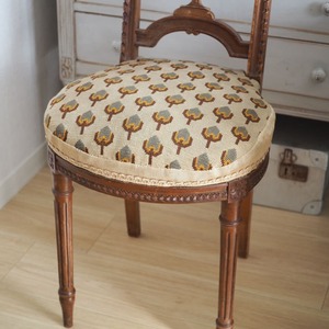 楽器のハープがモチーフの背が美しい、フランスの伝統的スタイルのアンティークチェアです。音楽を聴くときのために作られた椅子といわれます。