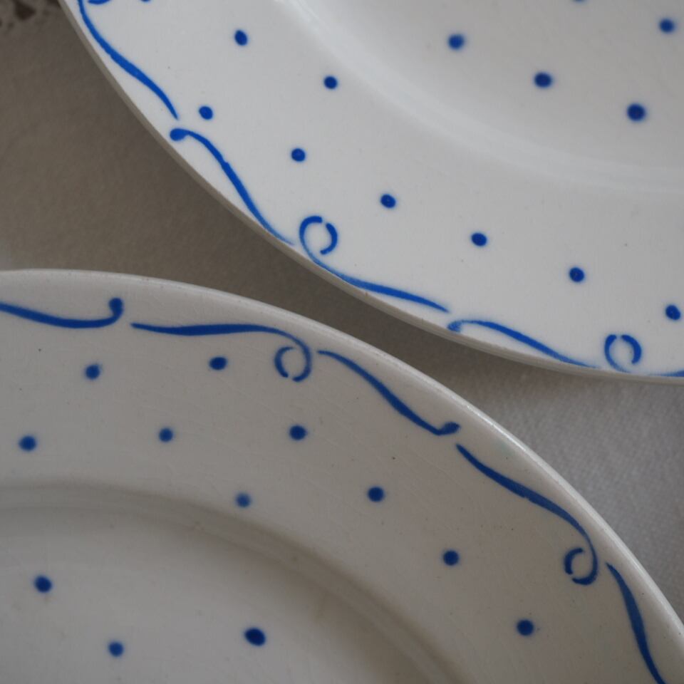 フランス屈指の窯サンタマン。古いものなので、ブルーのドットも濃淡あり、そういう均一でないところがアンティークの魅力ですね。赤とブルーの配色が、ザ・フランス。フランス好きな方に。