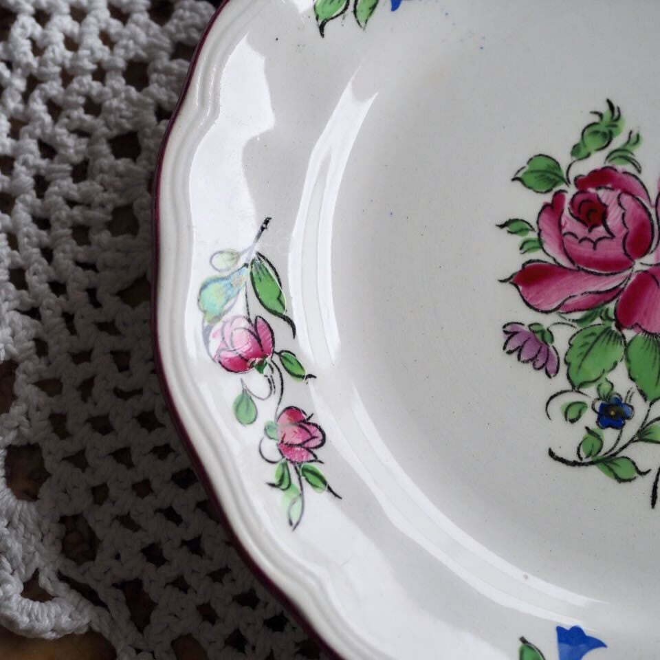 19世紀・リュネヴィルのバラの小皿" Réverbère"