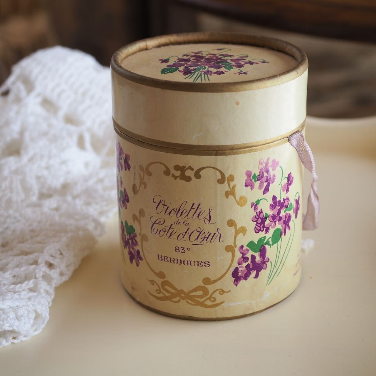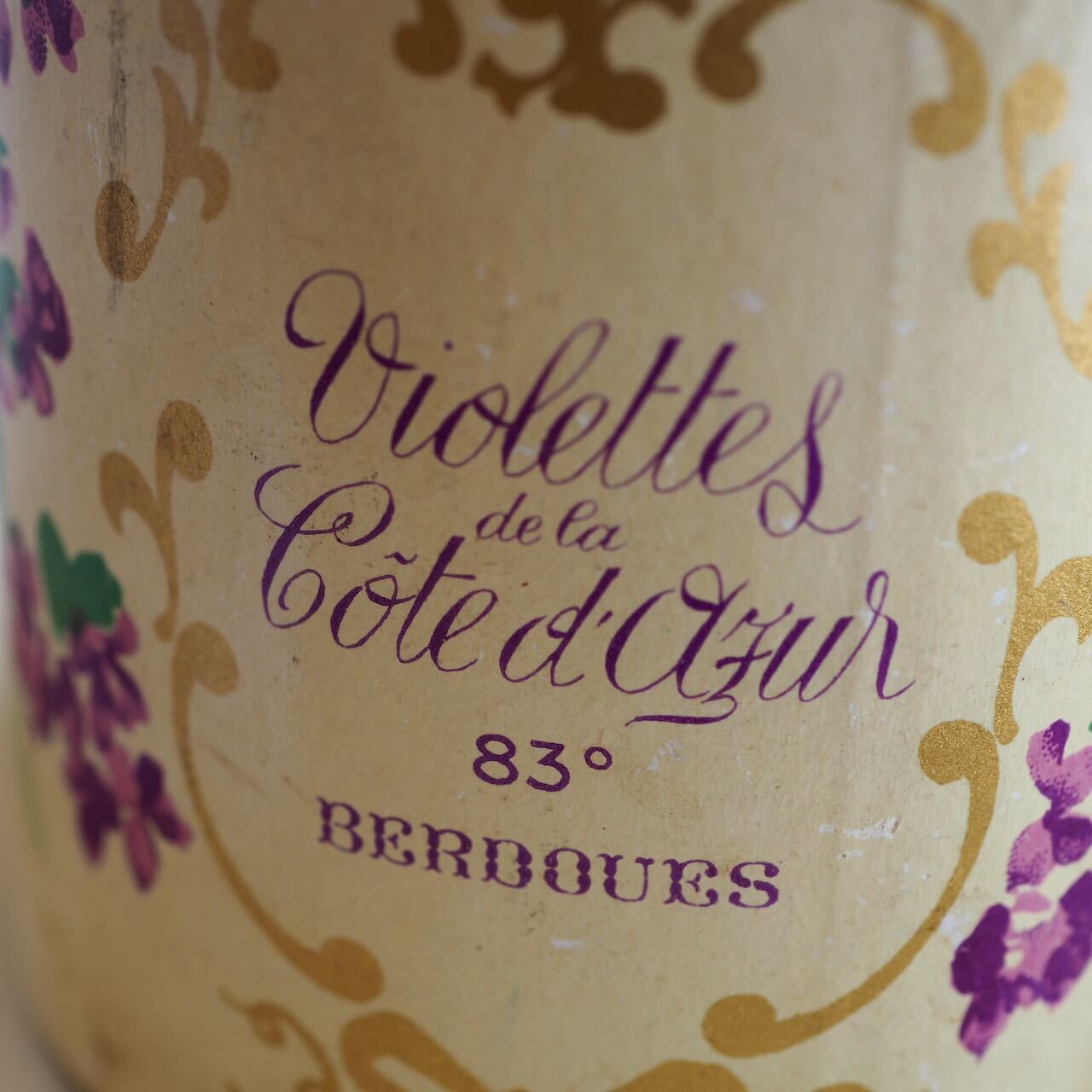 トゥールーズのすみれの香水ではなく、こちらはコート・ダジュールのすみれ。色も明るい紫です。トゥールーズに比べると生産量が少なかったのでしょう、いつも目を光らせて探していますが、見つけられる確率はかなり低いです。