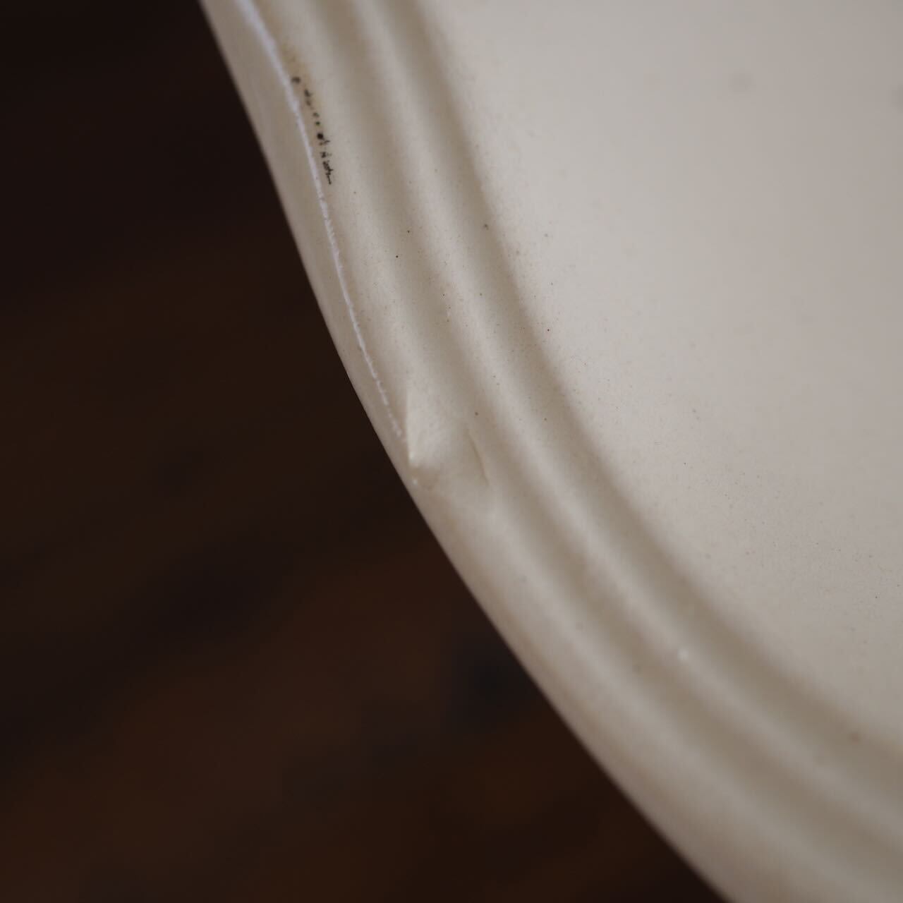 縁に一か所チップ、脚の底に一つ浅いヘアラインあり。それ以外は、小さな傷がある程度で大変よいコンディションです。