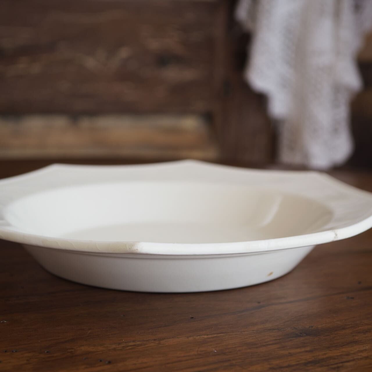 深皿はモントローの美しさがいっそう映える器だと思います。かといって気張らず、日常の食事にお使いいただくのが◎。深皿だからもちろんスープにもいいですし、カレーやシチューや親子丼など汁物にはうってつけ。どんな料理も映えてしまうのが、オクトゴナル・パールの魅力です。世界中で競い合って奪い合っているお皿。たかがお皿一枚ですが、この機会に、世界最高の一枚を体験してみませんか?