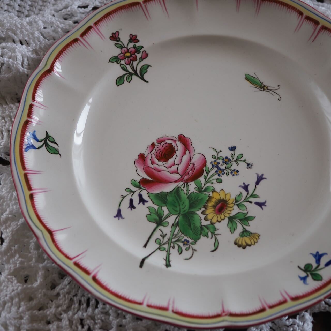 フランスの名窯リュネヴィルのアンティーク絵皿。ハンドペイントです。こちらはバラと草花のブーケの" Réverbère" 。
