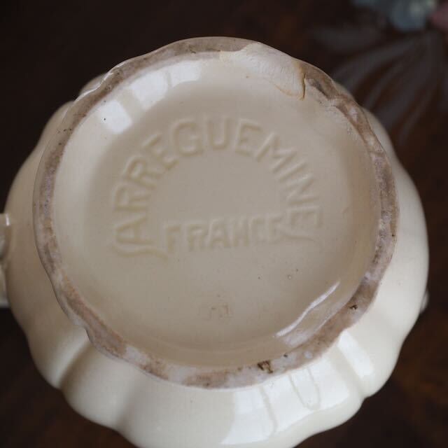 ぽってりした形がかわいらしい、サルグミンヌのピシェ。1900年から1940年に製造されたものです。色はコクのあるアイボリーです。