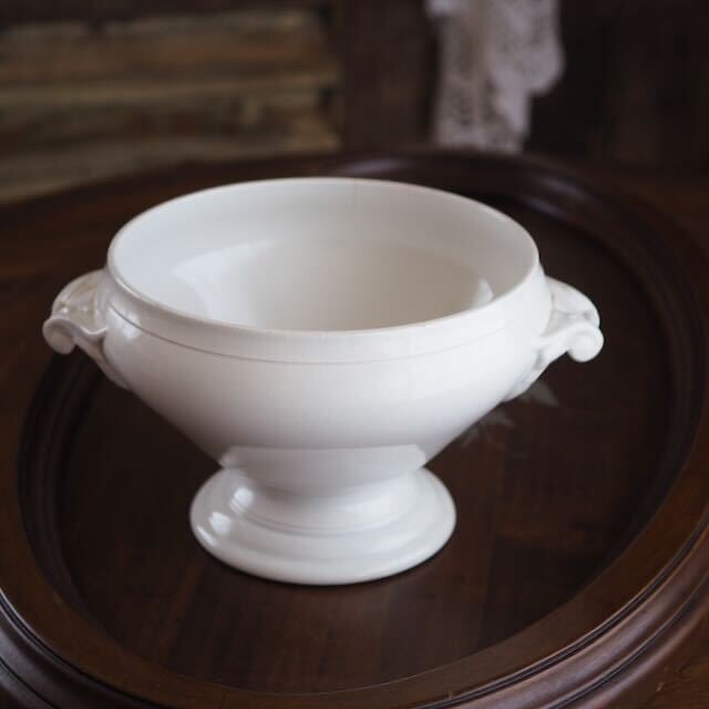 小さめサイズのスーピエール。花を入れるのにちょうどいい大きさです。フタは消失していますが、花器として使うなら、なくても大丈夫。スープを入れるなら必須ですけれど。
