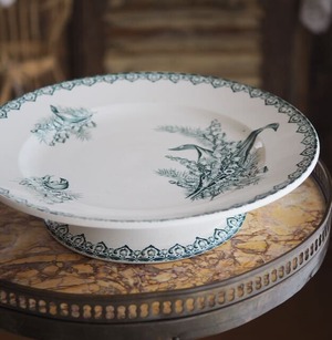フランス北部サンタマン製陶所のプレート「ミュゲ」。すずらん好きな方にお届けしたいお皿です。縁取りもずらり〜とスズランが並んでいます。深みのあるグリーンの色調も素敵です。5月1日すずらんの日に、こんな器でお茶の時間を過ごせたら、最高です。