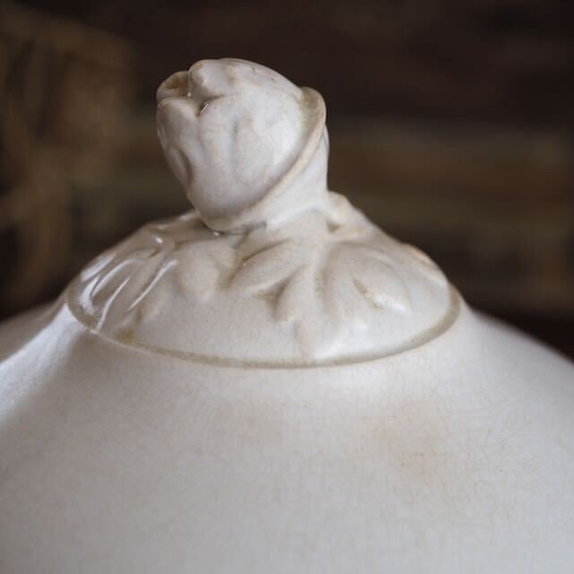スーピエールはスープ用の器なので、冷めないように蓋がついていました。現在、この時代のサルグミンヌのスーピエールでオリジナルの蓋が残っているものと出会うチャンスは少なくなってしまいました。こちらは大変希少なものといえます。