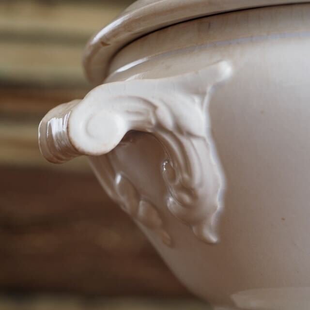 スーピエールというのは、スープ専用の器。ブルジョワのお金持ちの家では、こんな器にスープを入れて、テーブルで取り分けていたんですね。