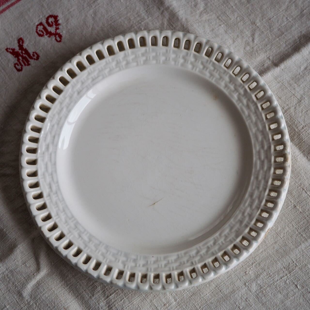 1844年に金賞を受賞した特別なお皿です。パニエ模様と透かし編みの技術がすばらしい。