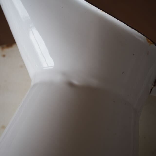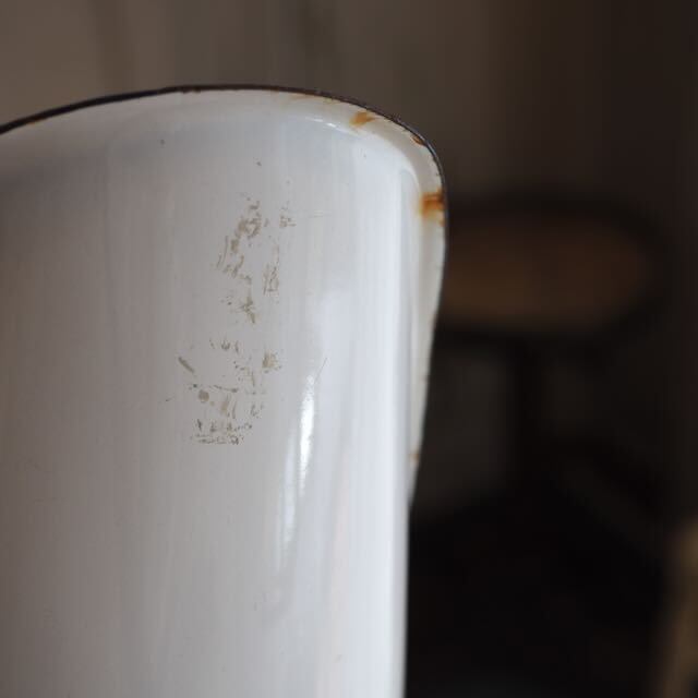 すっきり無駄のない美しいフォルムのホーロー製ジャグ。大きくて状態のいいものはフランスでもなかなかレアになってしまいました。こちらはブロカント市で発見!高さ40センチの大型ビンテージジャグです。