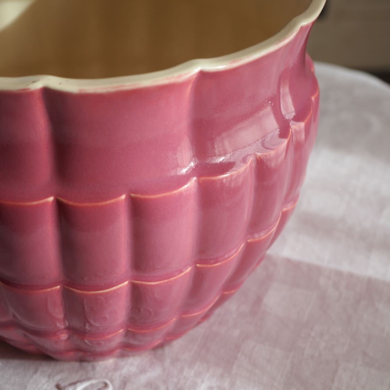 明るいピンクの色合いが華やかで、どんなインテリアにも華を添えてくれる鉢カバーです。ピンクでポップなのに品の良さも感じられるのはフランスマジックといえるでしょうか。グリーンだけでも素敵ですし、黄色のミモザなどに合わせてもかわいいです。