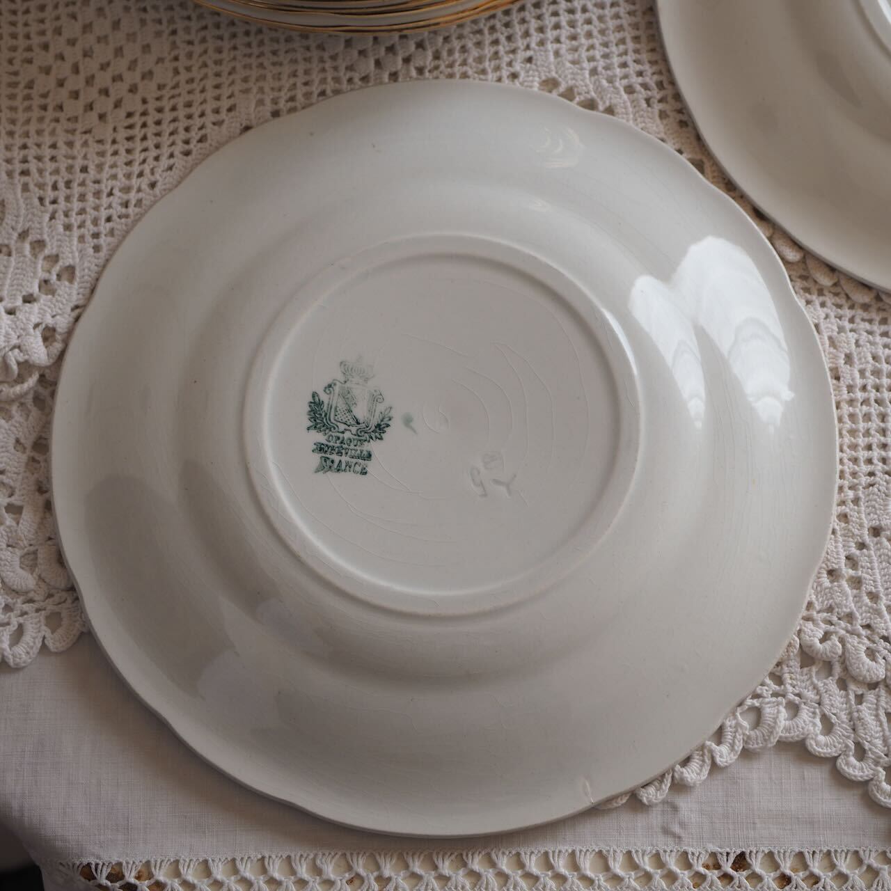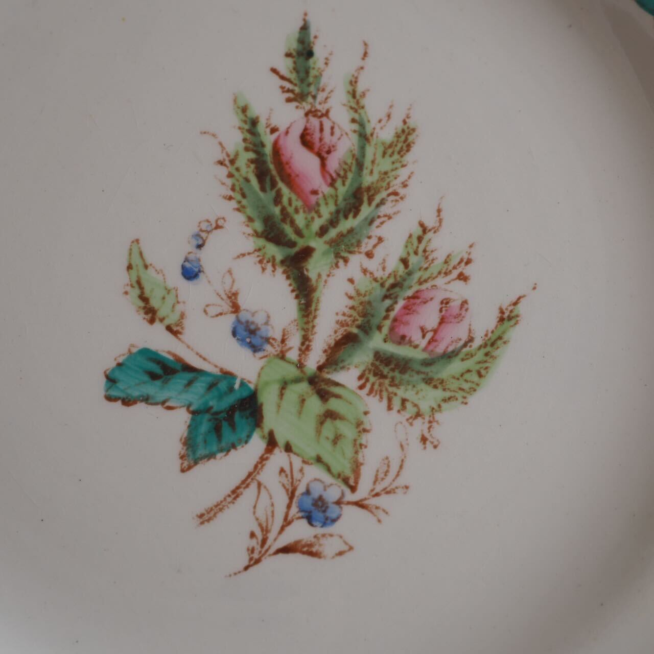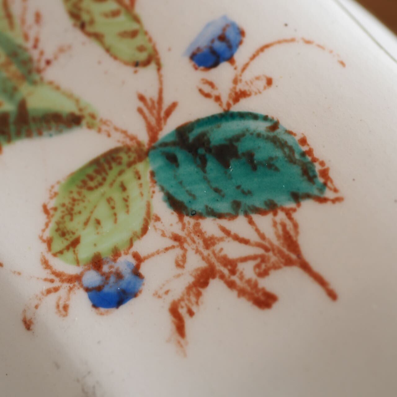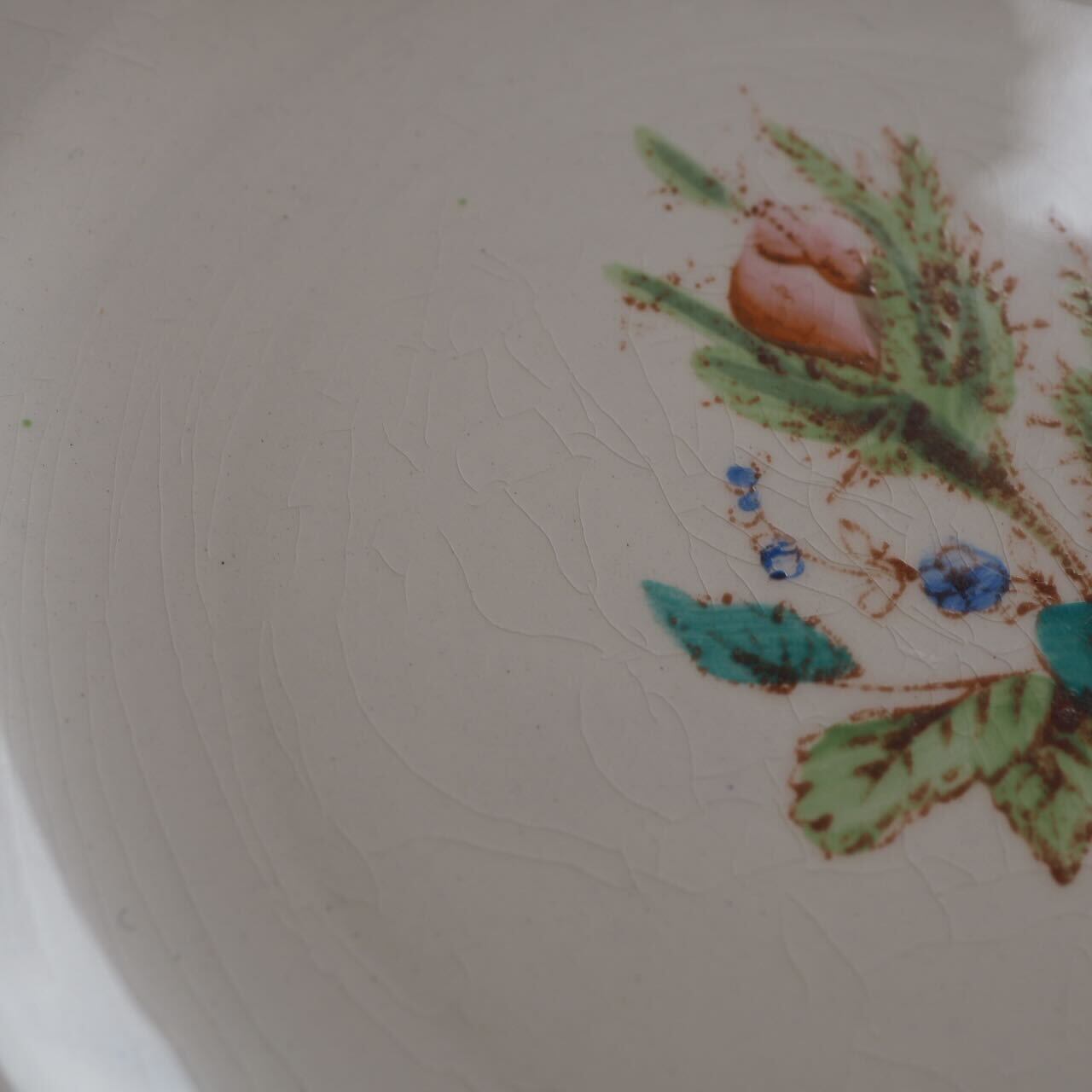 19世紀末から1900年頃にかけてのフランス、リュネヴィル窯で作られたデザート皿は、バラの蕾の美しい模様が印象的な逸品です。