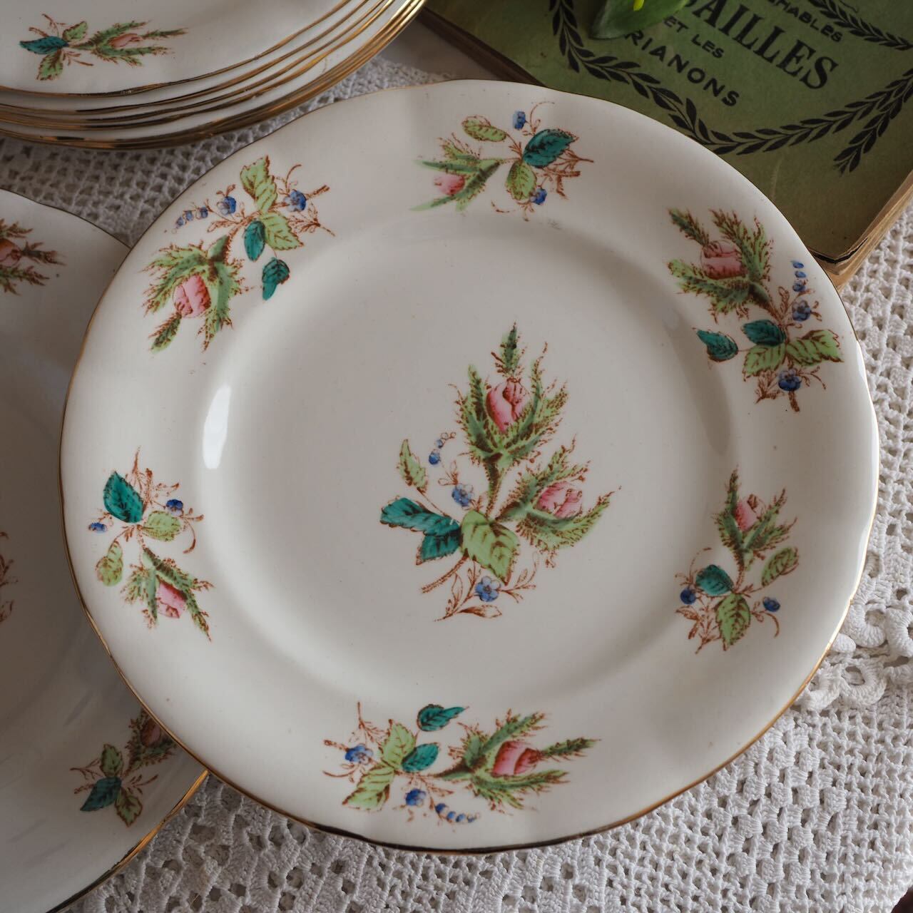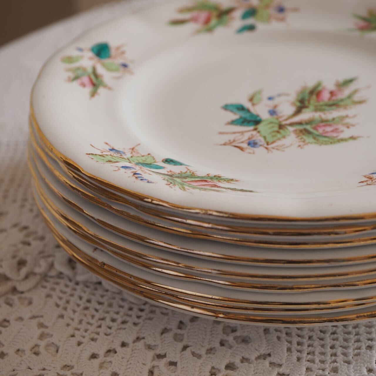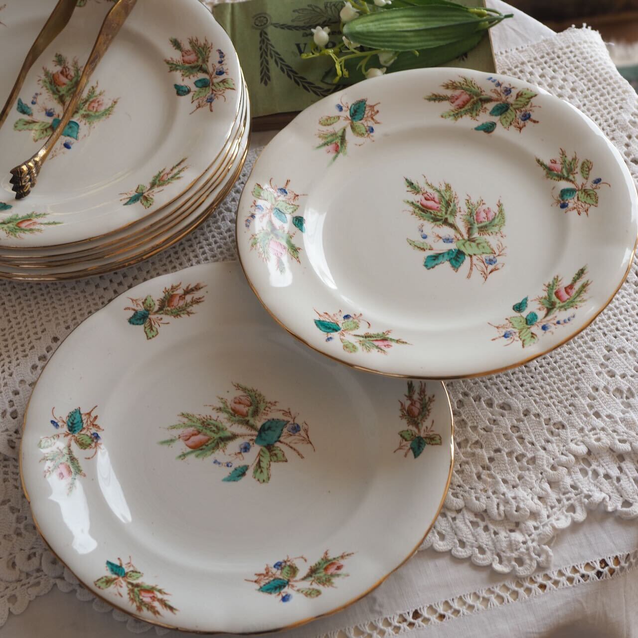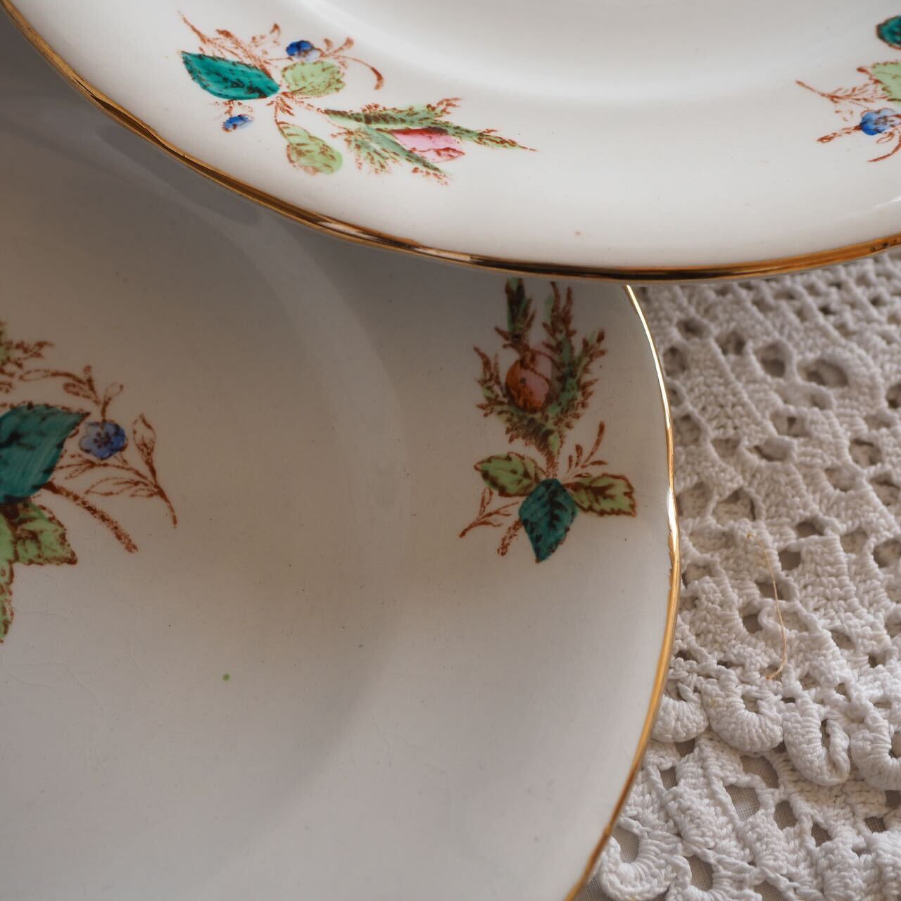 19世紀末から1900年頃にかけてのフランス、リュネヴィル窯で作られたデザート皿は、バラの蕾の美しい模様が印象的な逸品です。