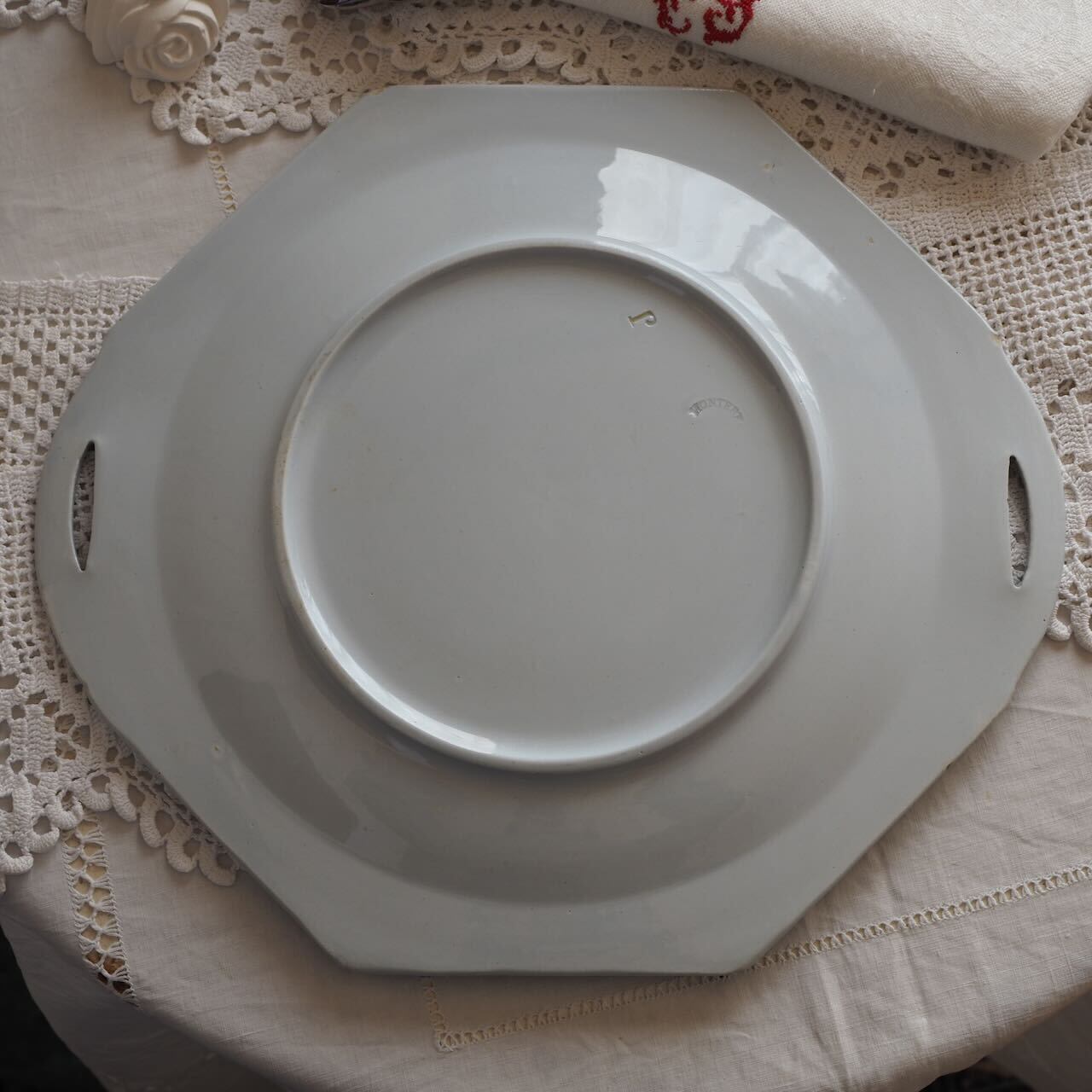 持ち手がついたオクトゴナルのケーキ皿というのは、ほとんど見たことがない希少なお品です。状態も完璧。多少の小傷がある程度の奇跡的な状態です。