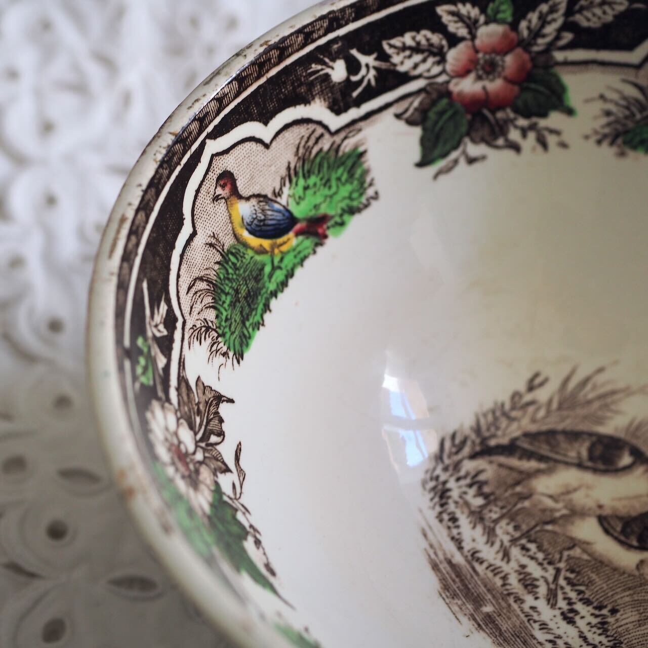 欠けやヒビなど特筆すべきダメージは見当たらず、たいへん良い状態です。経年による小傷や絵柄の擦れ、金彩のはがれなどはありますが、それもアンティークの風情としてお楽しみください。