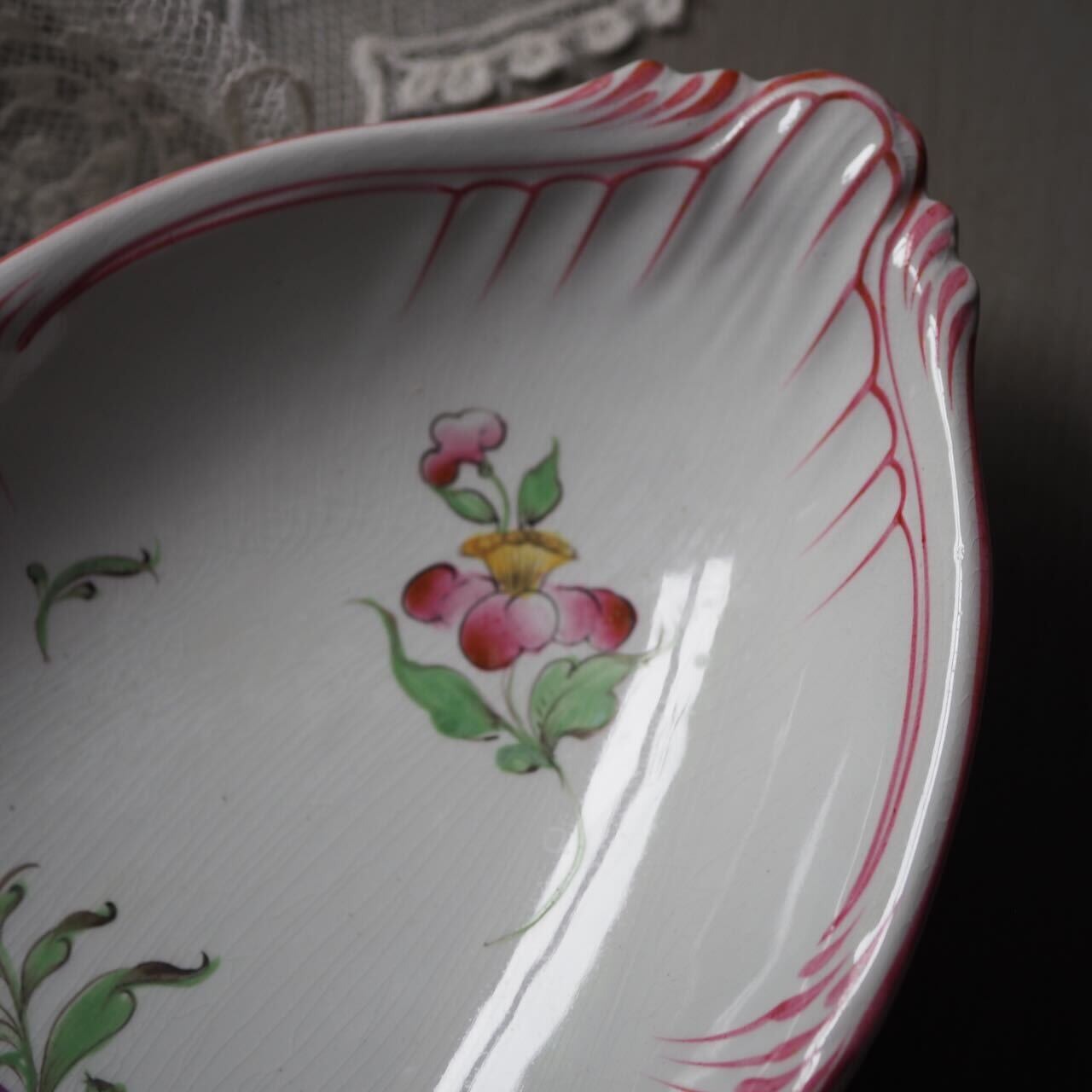 マリーアントワネットも愛した由緒正しい窯リュネヴィルの大きいオーバル皿 "Réverbère" 。アーモンド型にピンクの縁取り。たいへんレアなお品です。チューリップを中心とする可愛いブーケ。テーブルを明るくしてくれます。ハンドペイントの美しい逸品です。