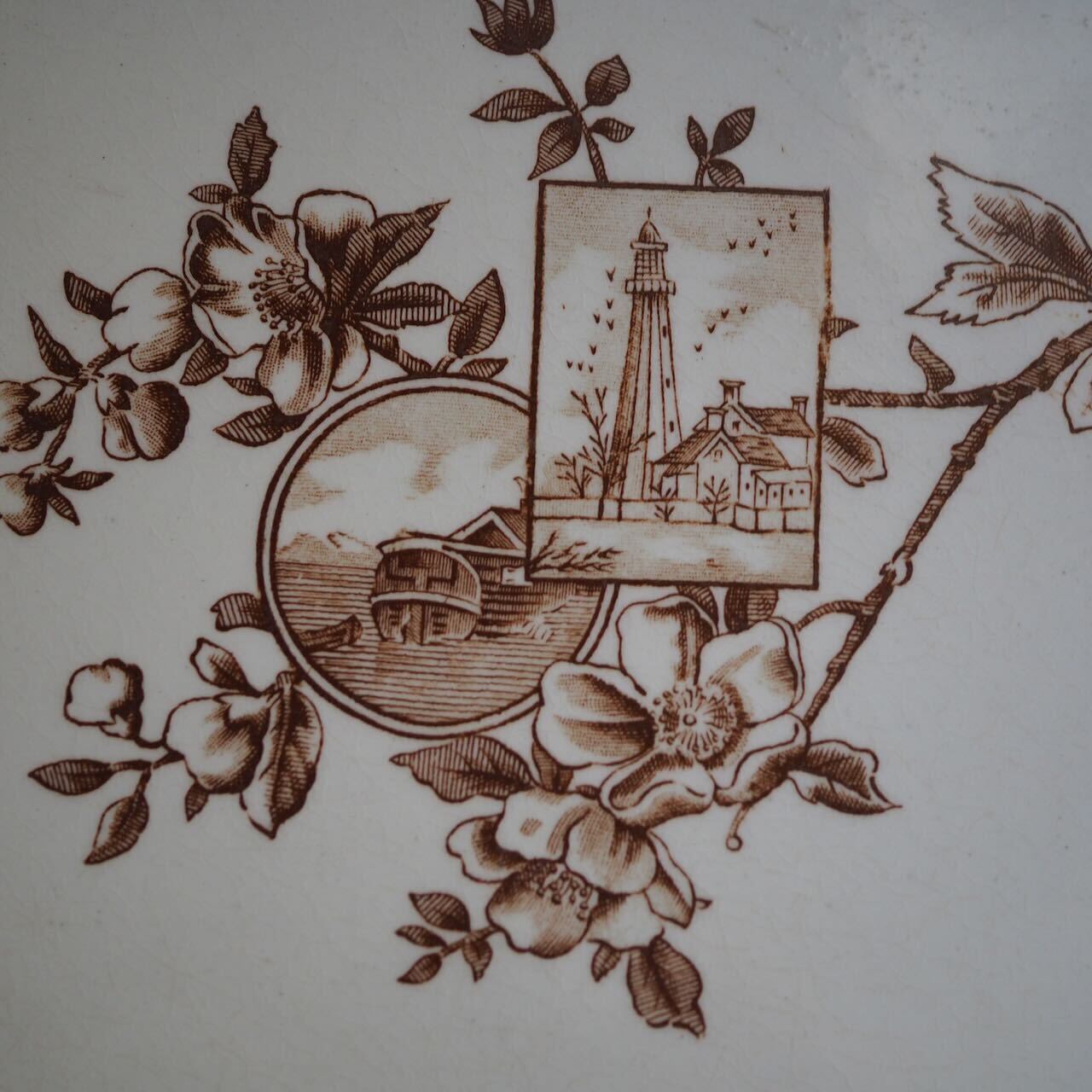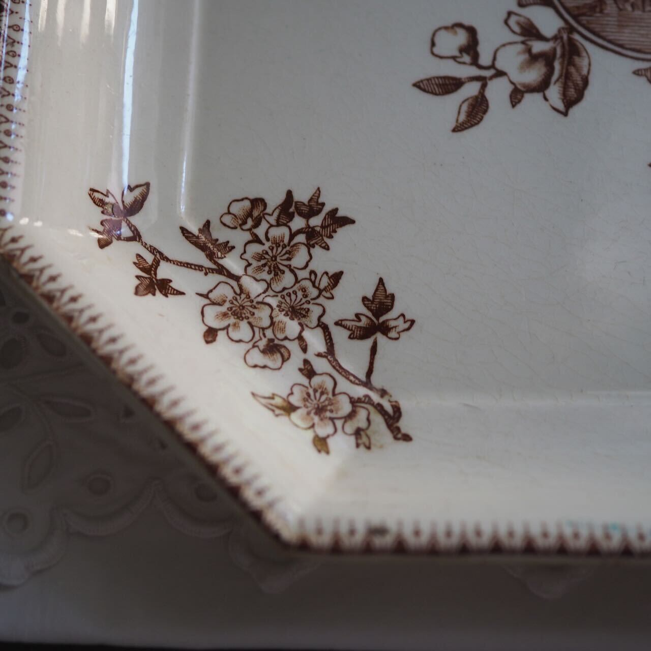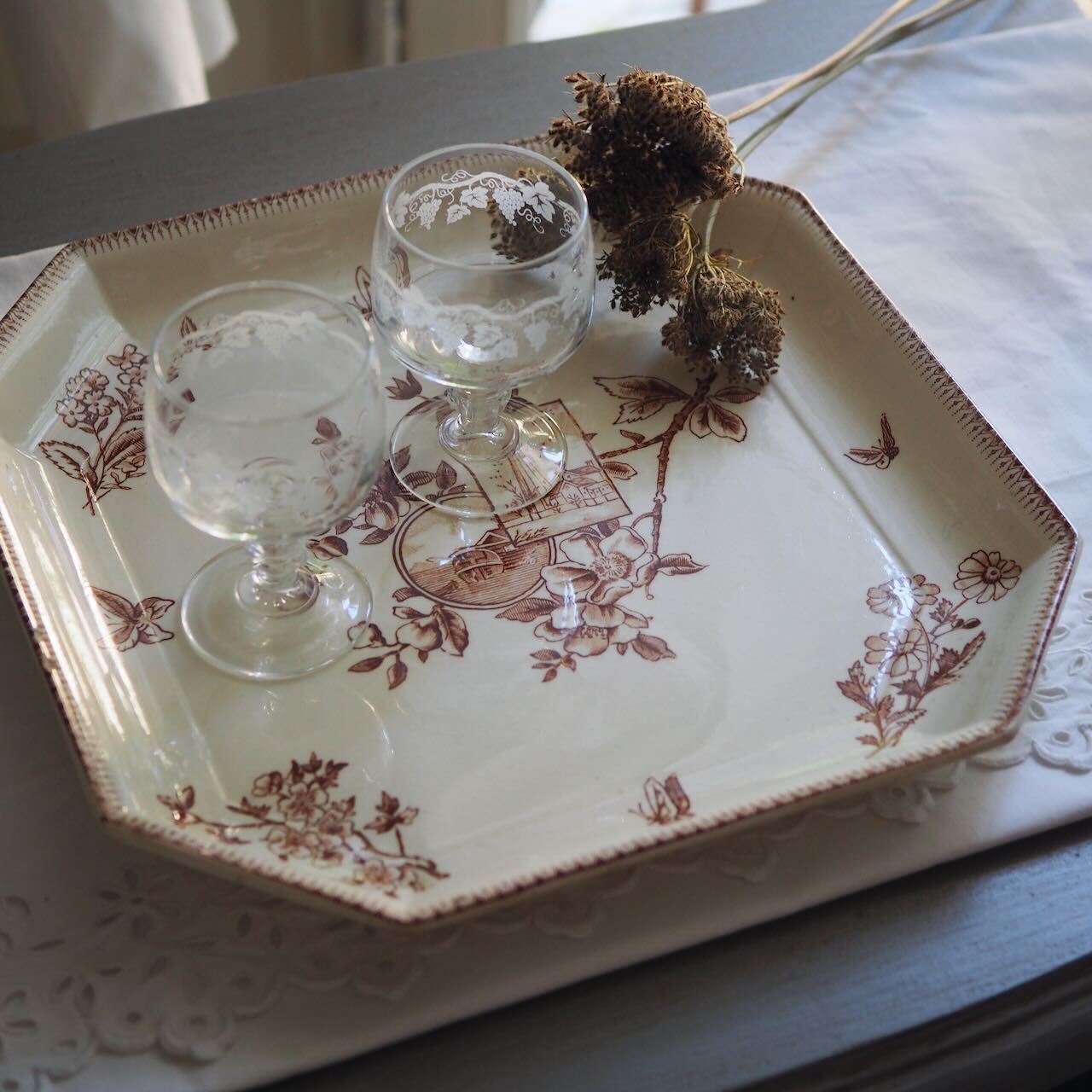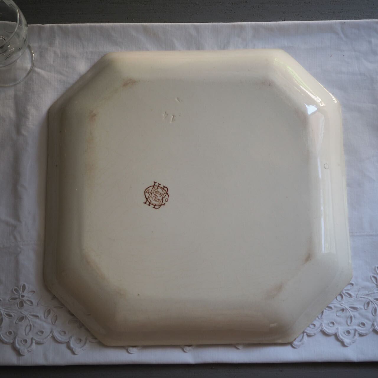 1878年頃に使用されたショワジー・ル・ロワ Hte Boulenger & Cieのバックスタンプが入った角皿です。まさにフランスでは浮世絵からのジャポニスム大ブームが起こっていた頃。この角皿もとても日本的な印象を受けます。ショワジー・ルロワは1900年代初頭にクレイユ・エ・モントローを吸収合併する実力派の窯。なめらかな陶肌やエレガントで品格のあるデザインが玄人好みといえるかもしれません。