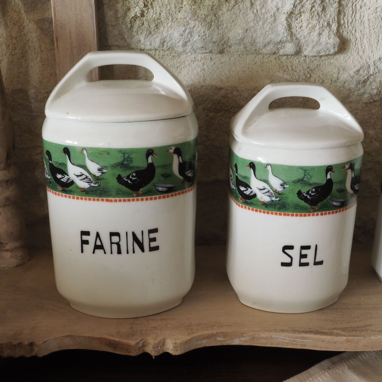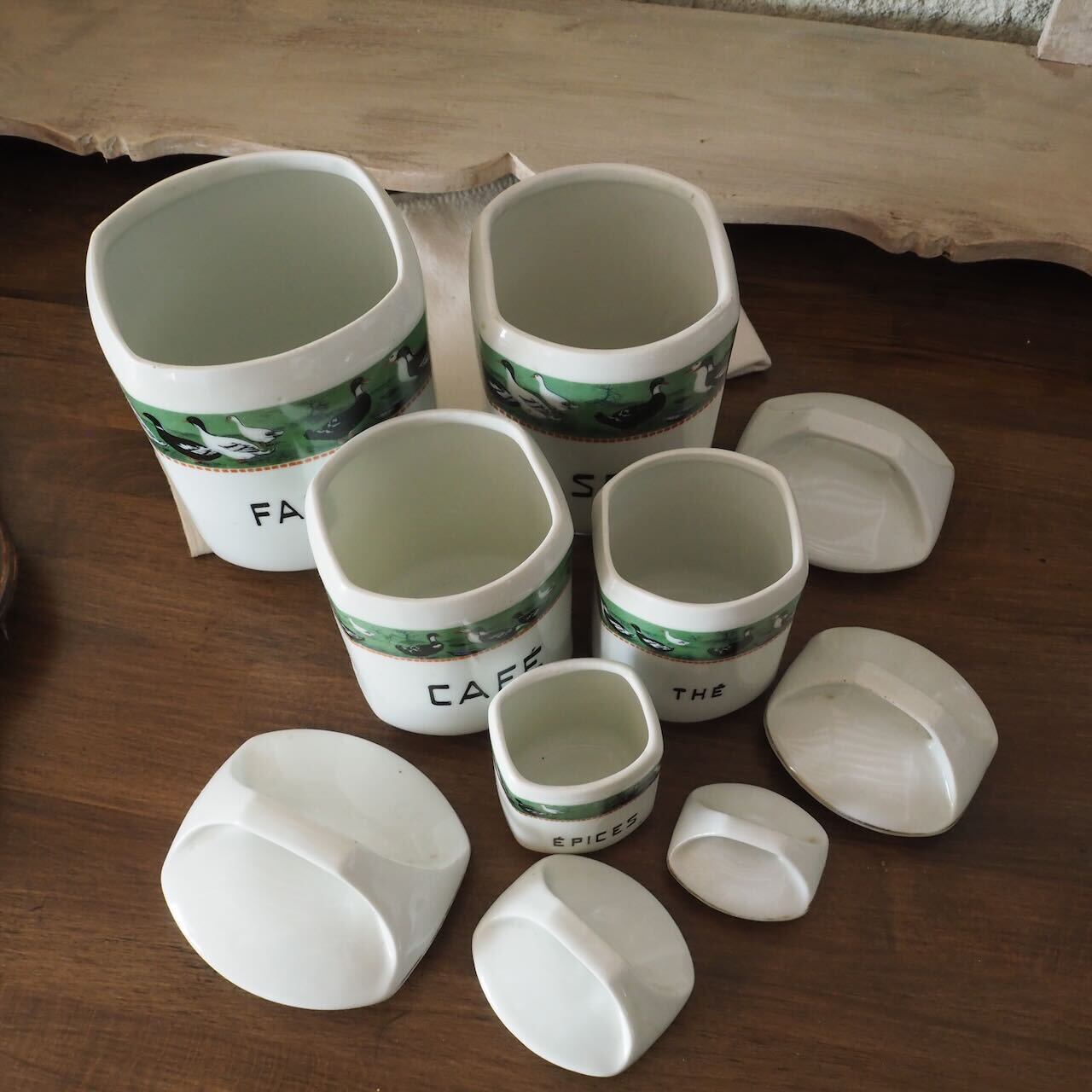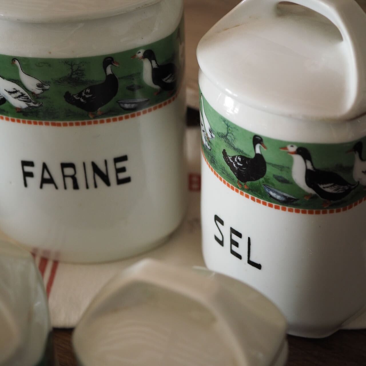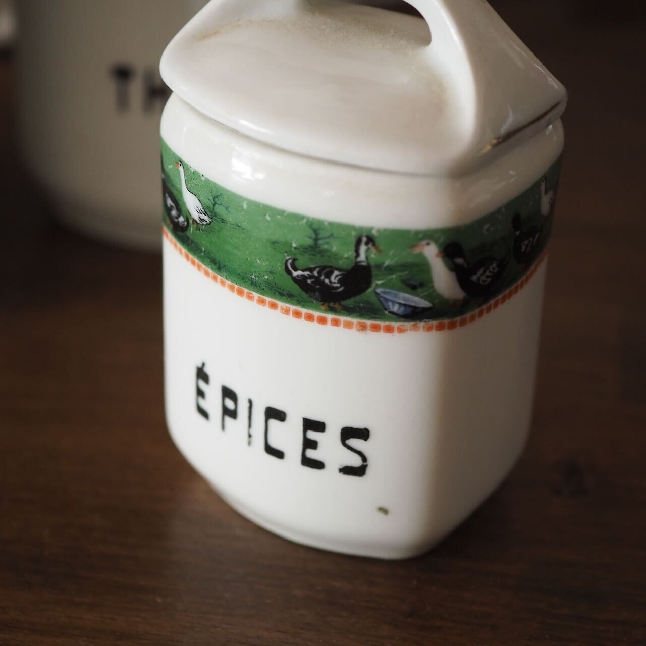 かわいいカモが描かれたキャニスターのご紹介です。フランスのブロカント市で見つけたものですがチェコスロバキアの UNION K PORCELAIN 社製。