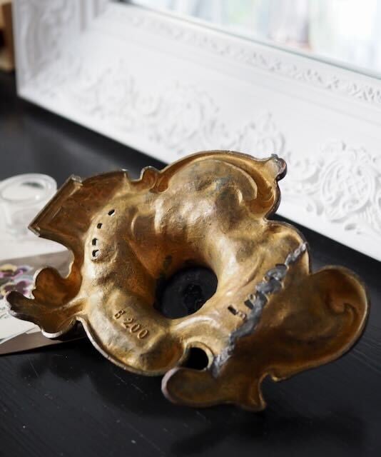 昔の人はこの中にインクを入れ、手紙をしたためていました。なんと優雅なのでしょう。インク壺としてご使用いただけますし、ブロンズで重みがあるのでデスクのペーパーウェイトとしてご利用いただいても素敵です。