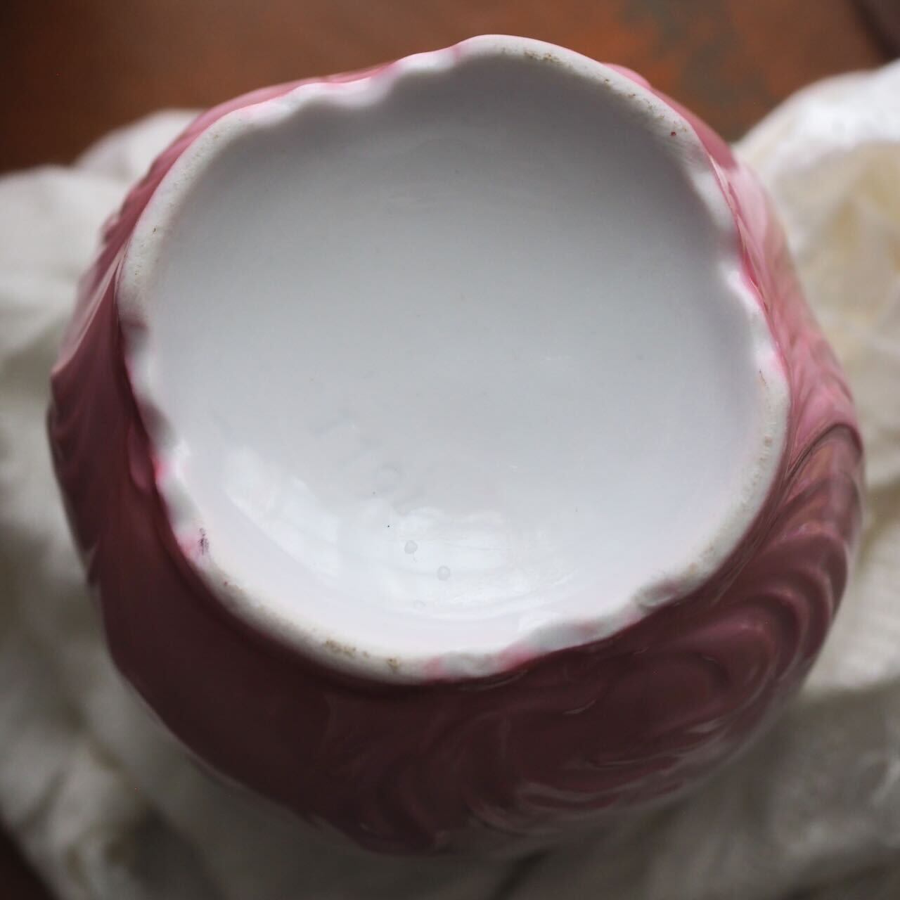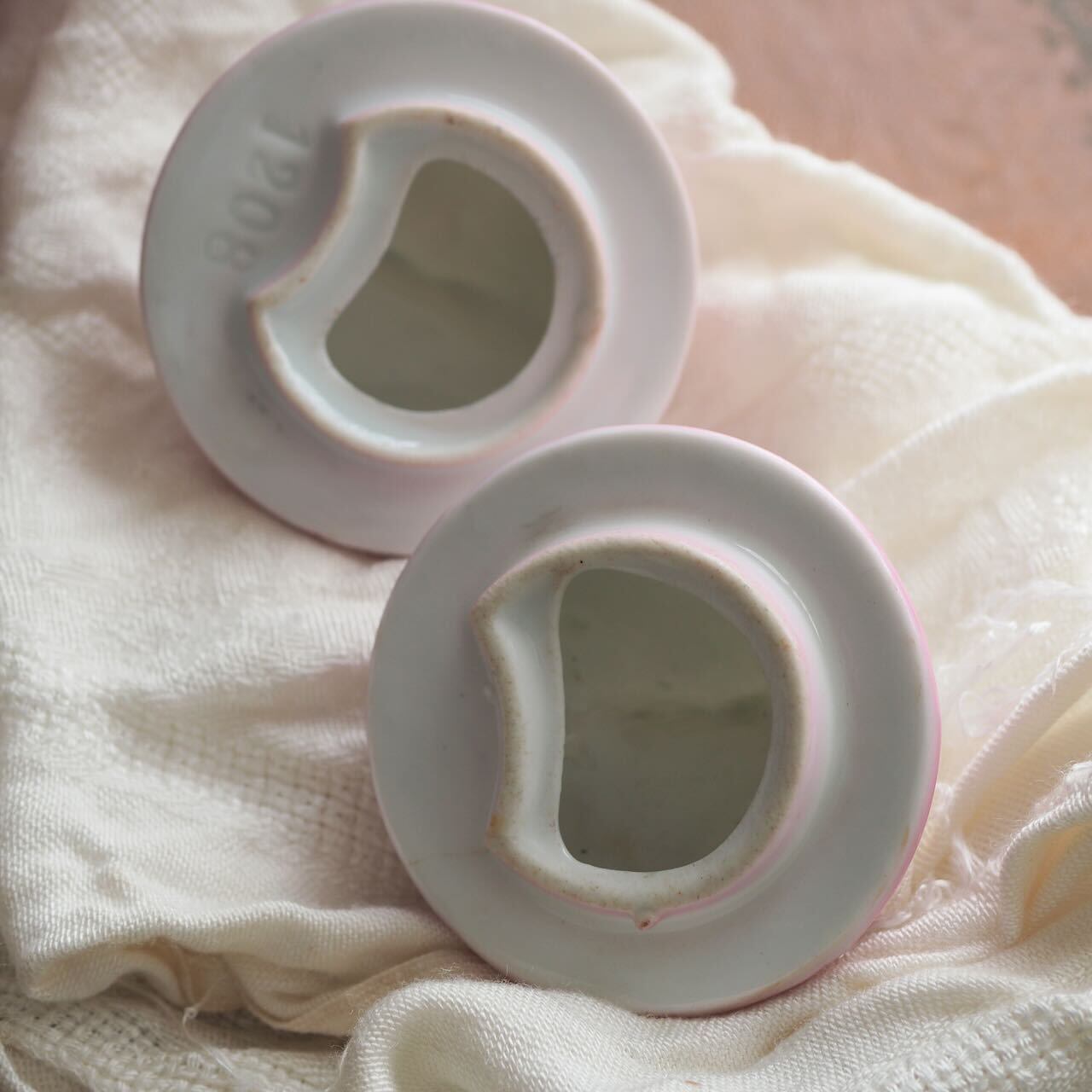 フランス南西部のブロカント市で出会ったキャニスターセットです。ぽちゃっとしたフォルムとピンクのグラデーションが愛らしく、2輪の花のデザインがアール・デコでとてもおしゃれ。後ろ姿はレリーフだけ、というのも素敵です。