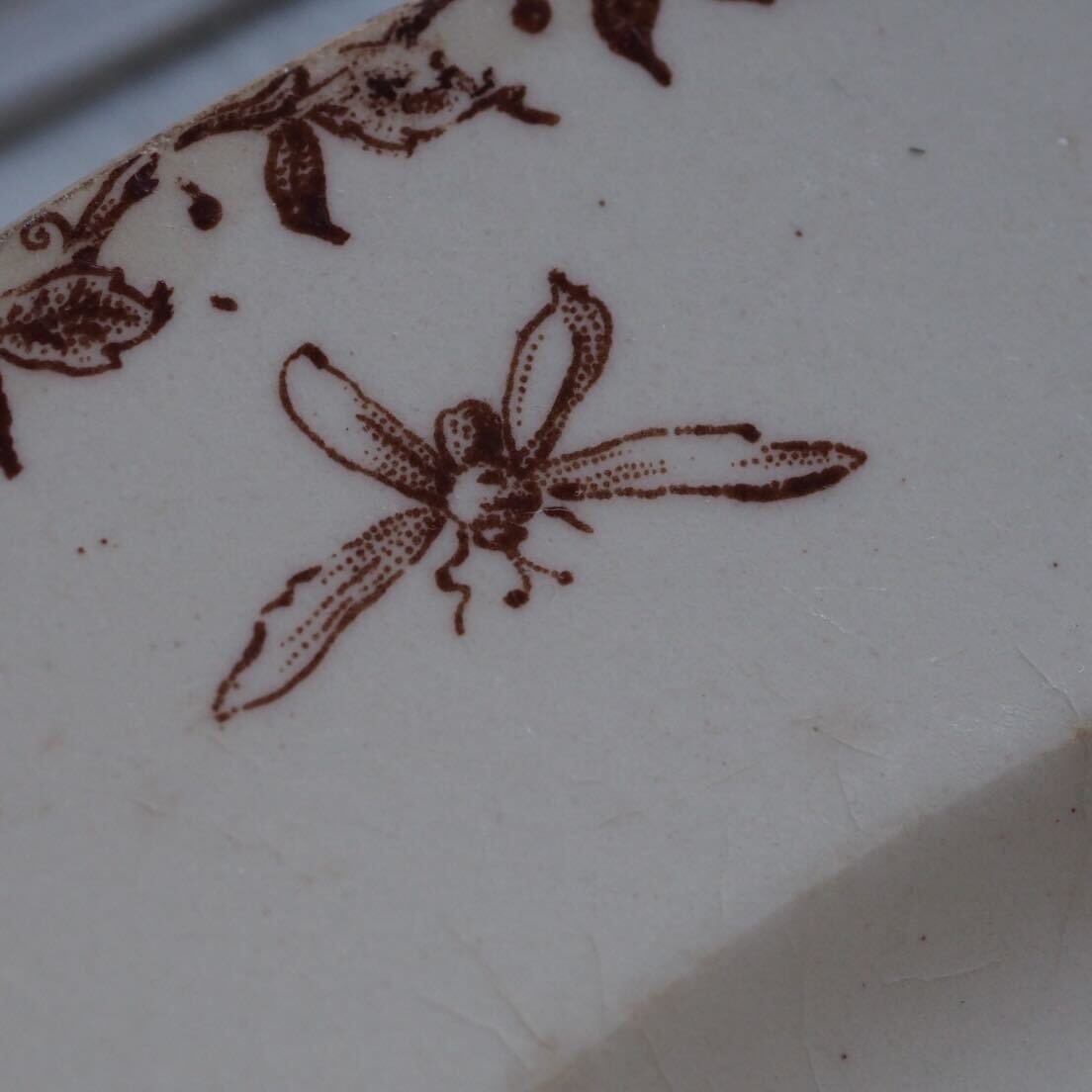 茶系の絵柄と貫入からのシミが呼応して、とても美しいセピア色の器に仕上がっています。時を経たものだけがもつアンティークの魅力……。古いものがお好きな方に。