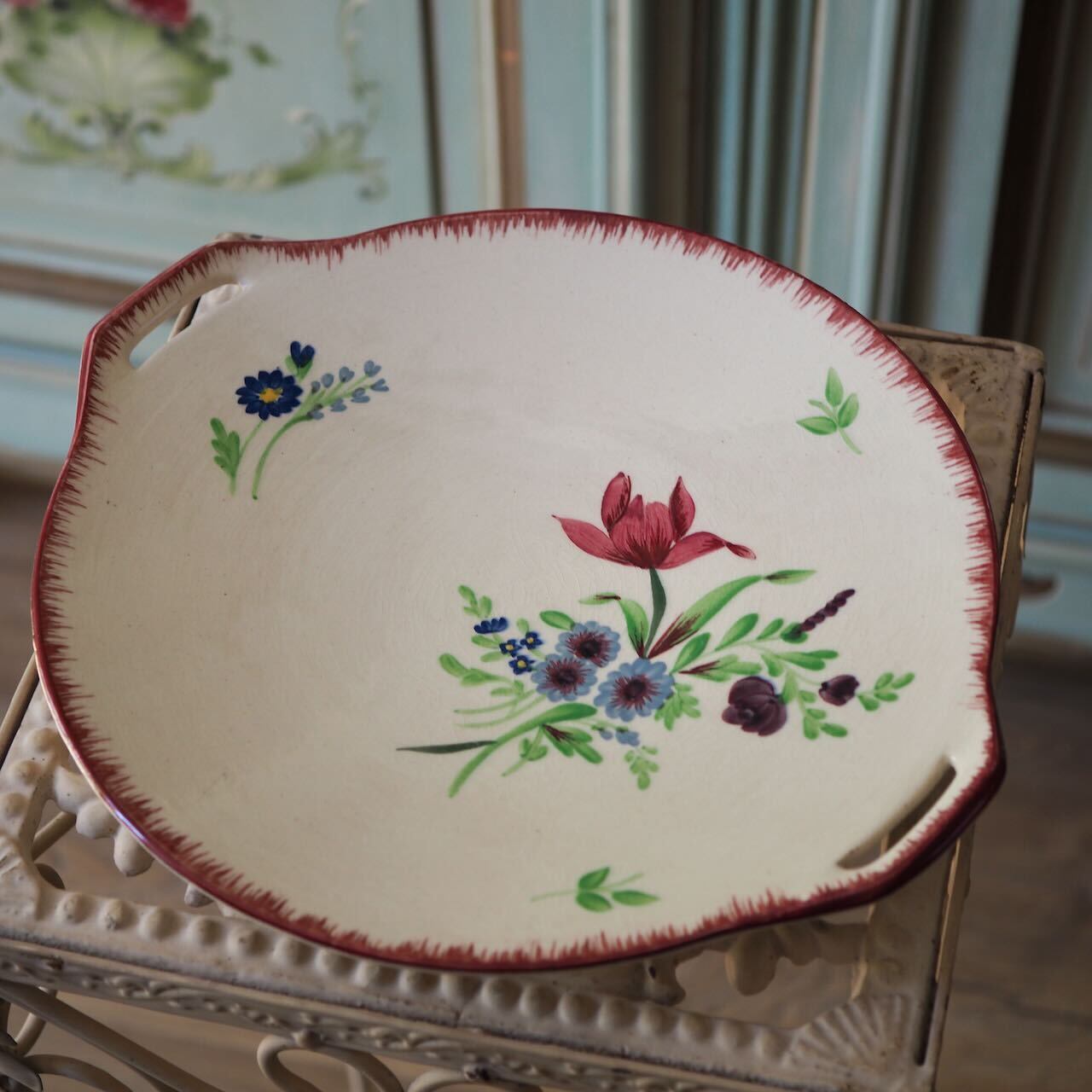 ペクソンヌ窯のケーキ皿 ハンドペイント