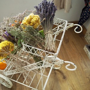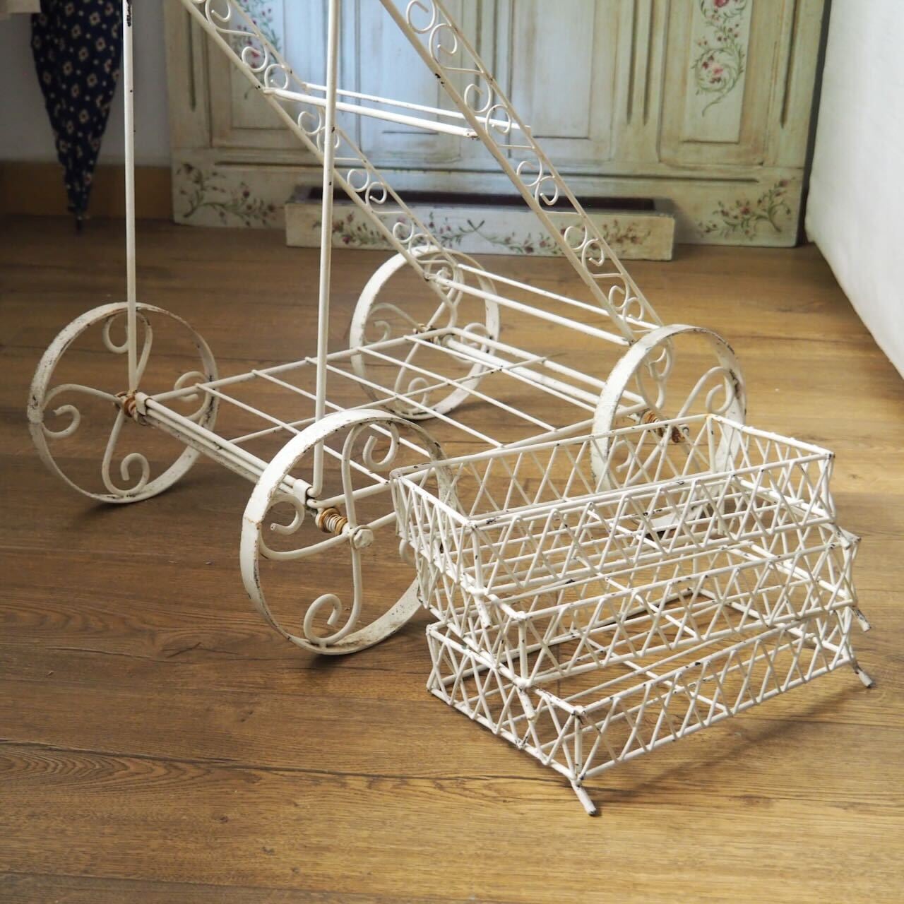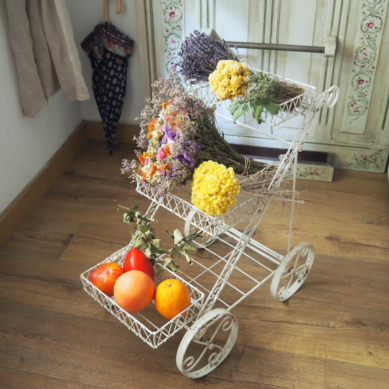 プロヴァンスの家庭では、こんな小さめカートを野菜や果物を入れてキッチンに置いてあったりしますが、こちらは格別にかわいいです。