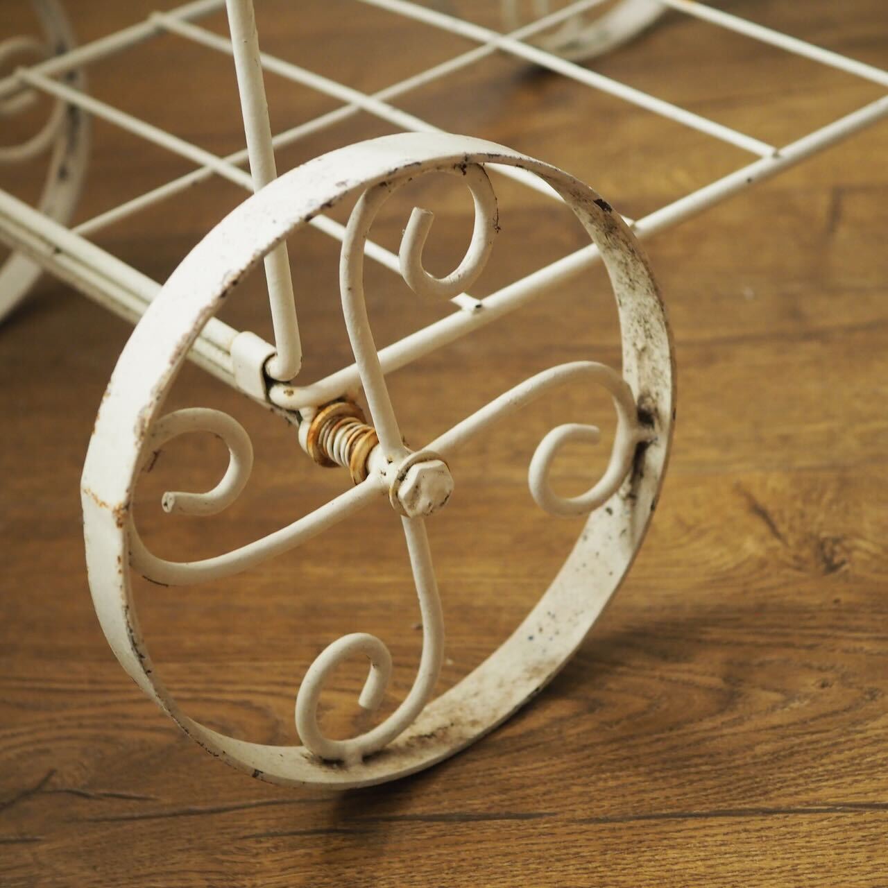 車輪も現役、コロコロ転がせて楽しいです!アイアン製で、カゴ部分は取り外せます。頑丈な作りです。